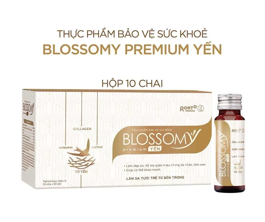 • Blossomy Premium Yến giúp làn da hồng hào, săn chắc đầy sức sống, ngăn ngừa các dấu hiệu lão hoá da, khắc phục tình trạng da nhăn, khô, sạm, kém đàn hồi.