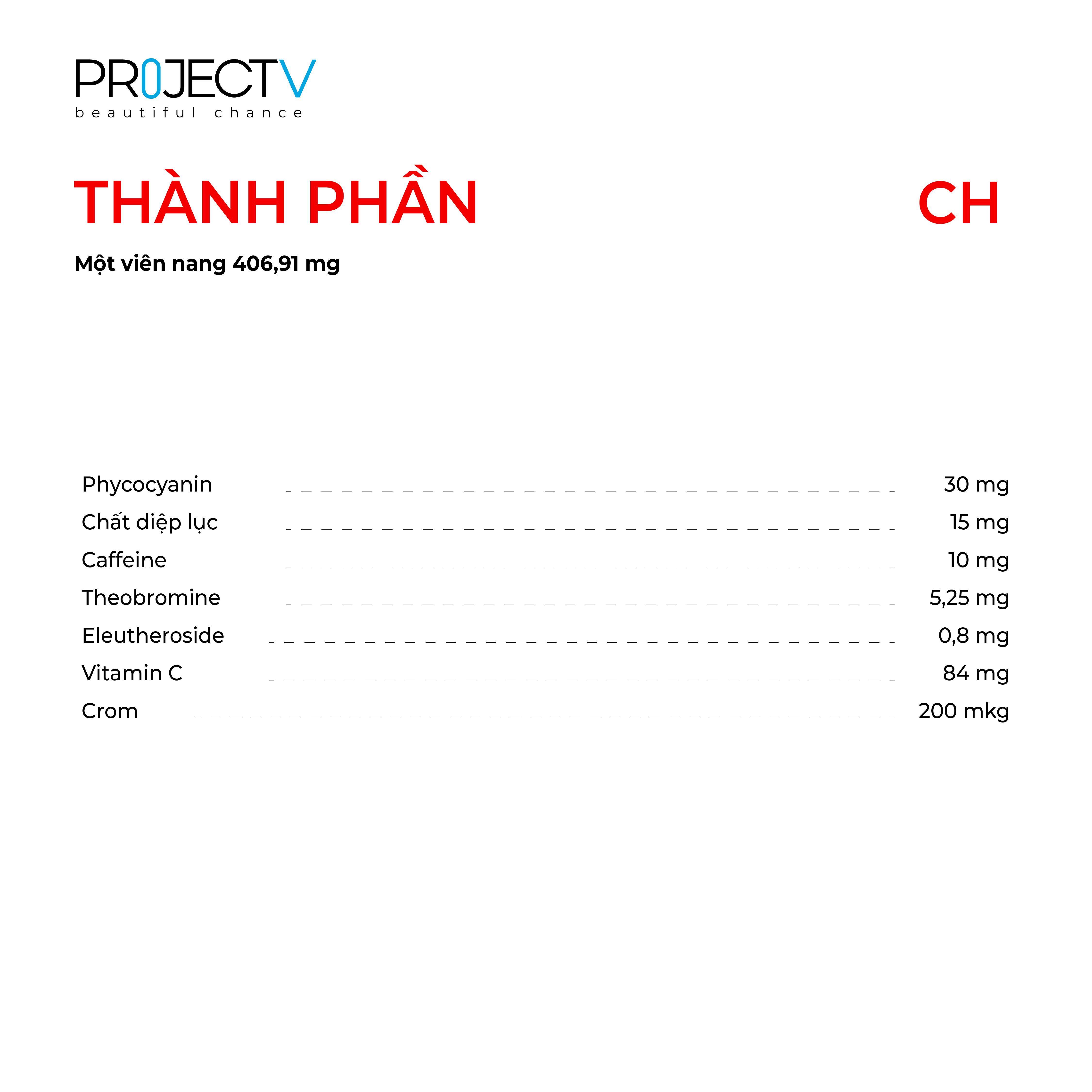 PROJECT V - CLASSIC HIT CH | NGUỒN NẠP NĂNG LƯỢNG 60 VIÊN NANG Sản phẩm CH (Chromevital) cung cấp năng lượng đa thành phần có hiệu quả chống mệt nhọc và chống nhanh mệt mỏi. Bằng