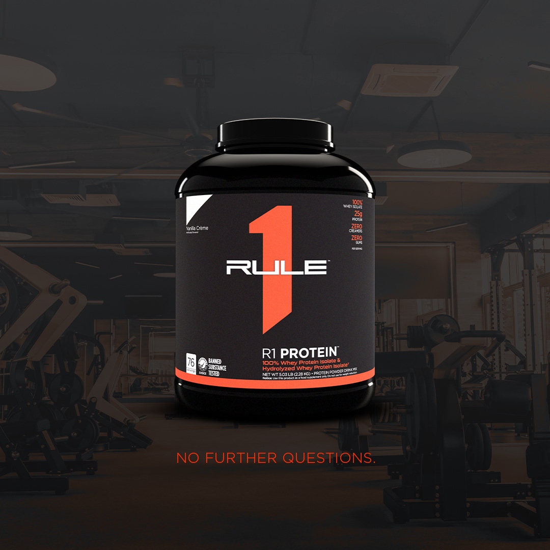 - Rule 1 Whey protein isolate chứa 25 gam mỗi khẩu phần, với 100% whey cô lập , whey thủy phân hiệu quả nhanh, hơn 6 gam BCAAs và hầu như không có gì khác.