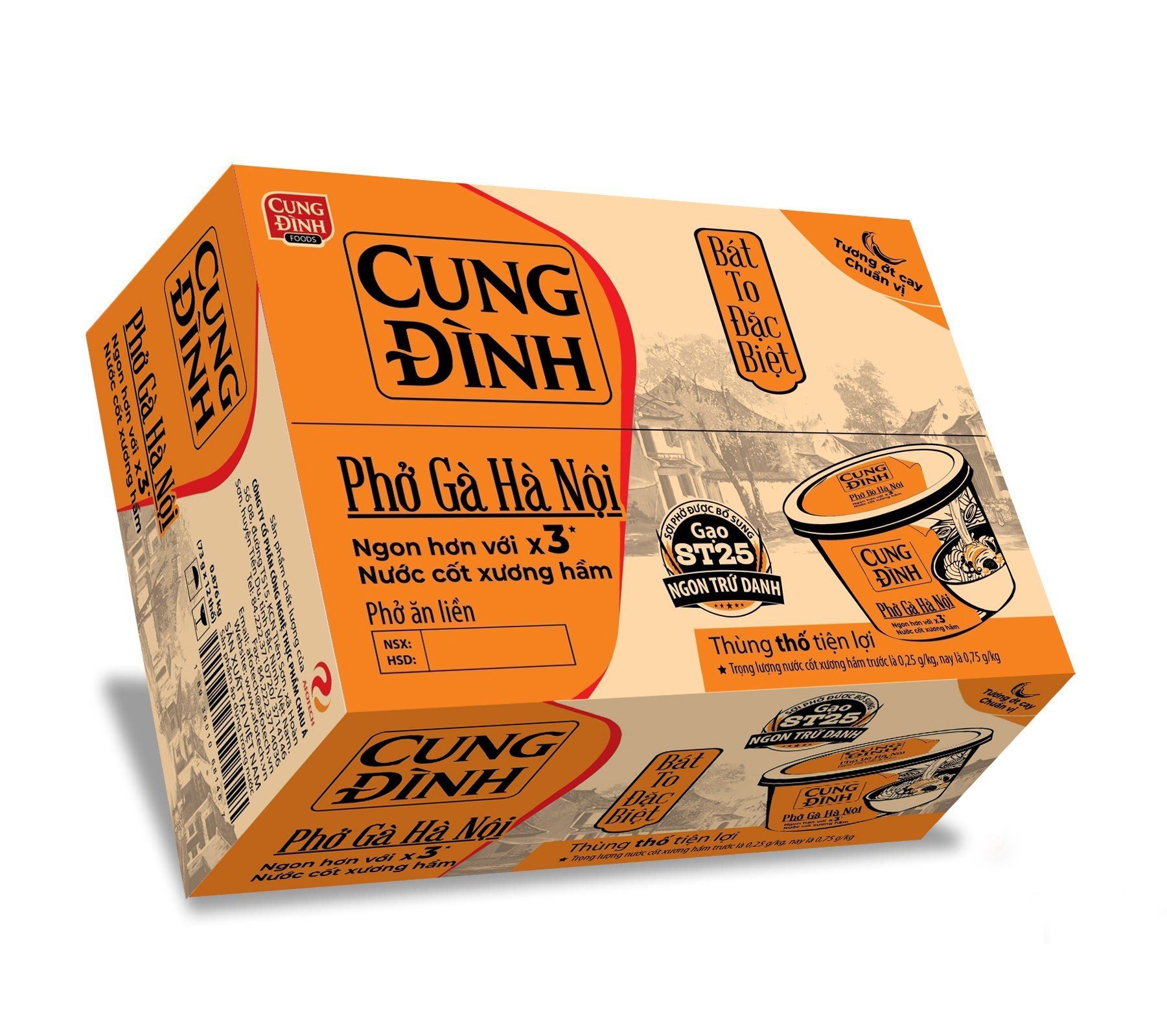 - Thùng 12 Hộp Phở Bò Hà Nội Cung Đình với nước cốt xương hầm và tương ớt chuẩn vị Hà Thành, chỉ cần vài phút cho khâu chuẩn bị và chế biến là đã