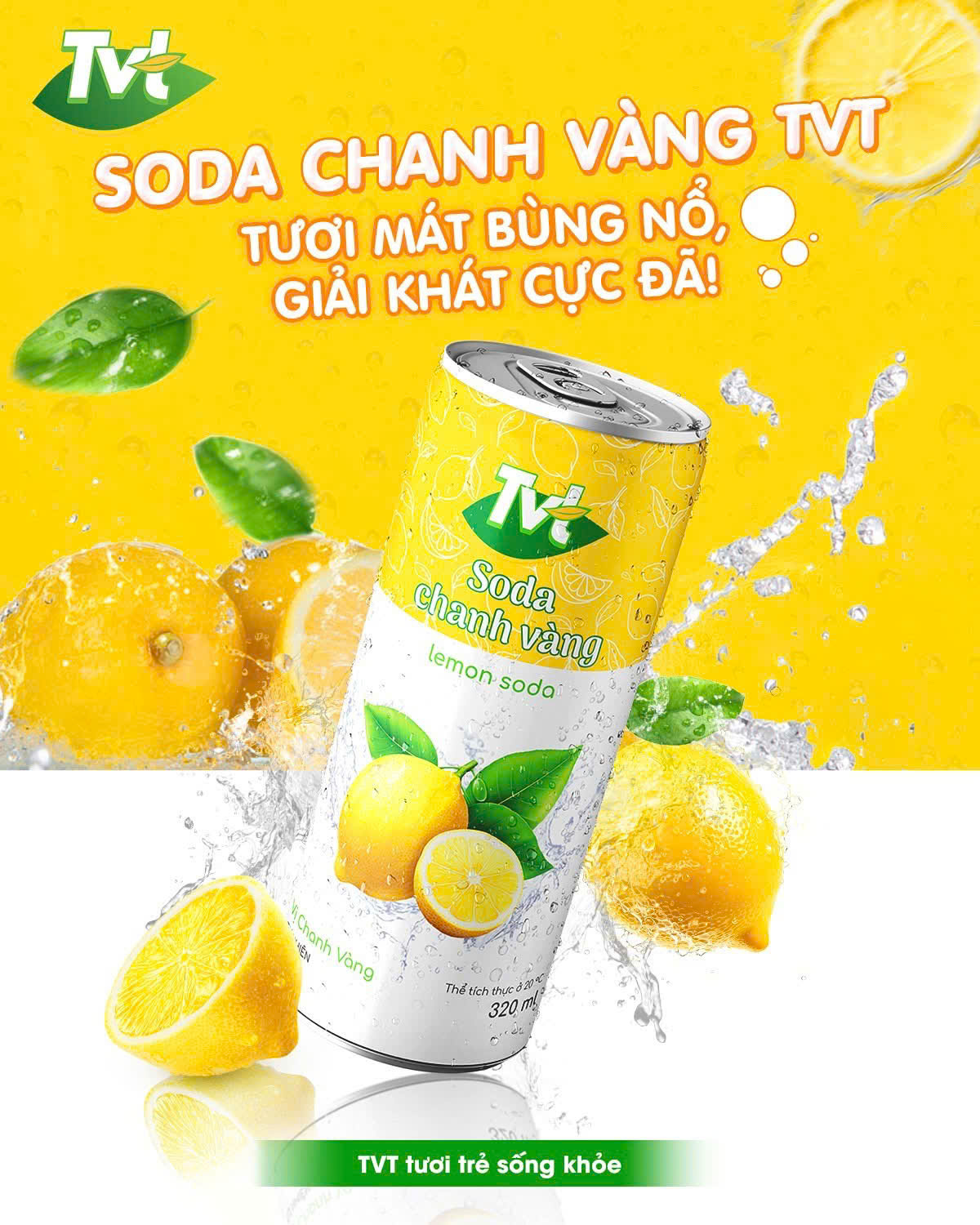 ✨[Thùng 24 lon 320ml] Soda Chanh VàngTVT - Nước cốt chanh vàng tự nhiên cùng soda nhẹ nhàng