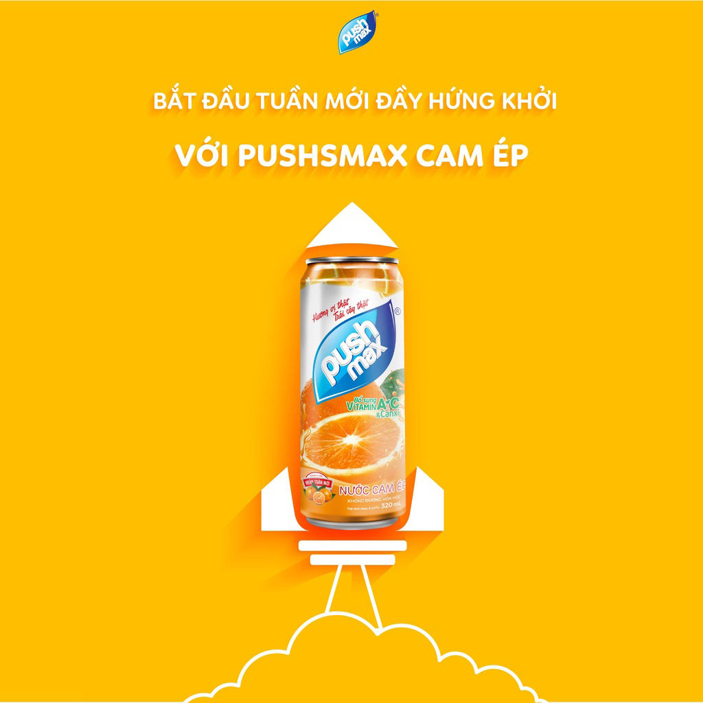 ✨Thùng 24 Lon Nước Trái Cây Cam Ép Pushmax (320ml x 24 Lon)