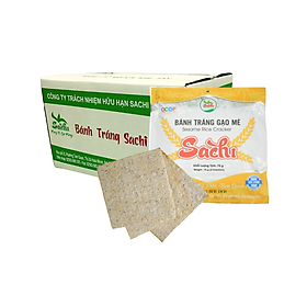 Bánh tráng gạo mè nướng sẵn Sachi xốp, giòn rụm, được sản xuất trên dây chuyền hiện đại khép kín, bánh nướng bằng điện vàng đều 2 mặt, bao bì hút chân không đảm bảo
