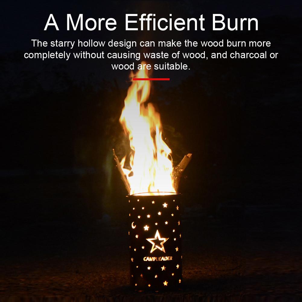 A More Efficient Burn: The starry hollow design can make the wood burn more completely without causing waste of wood, and charcoal or wood are suitable.