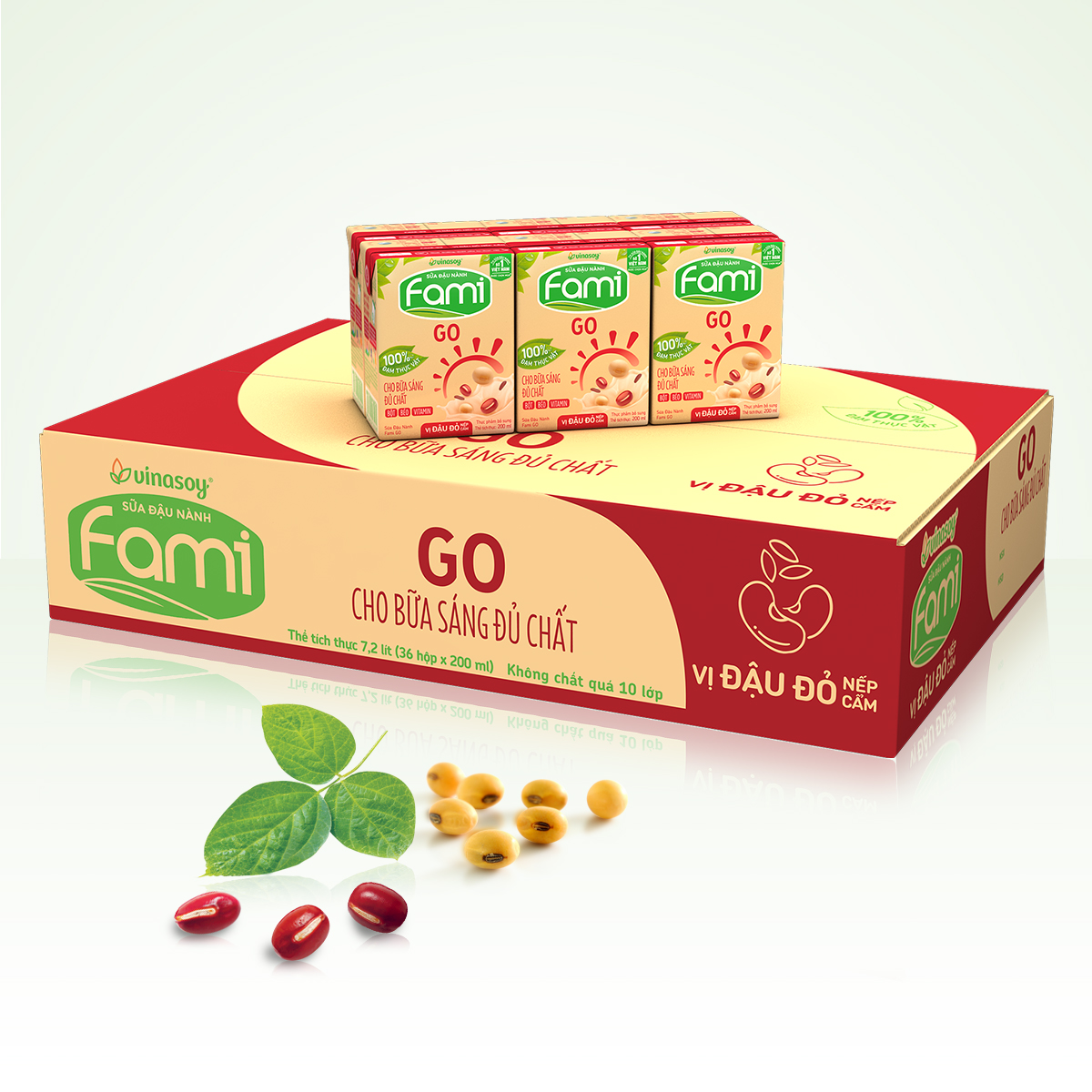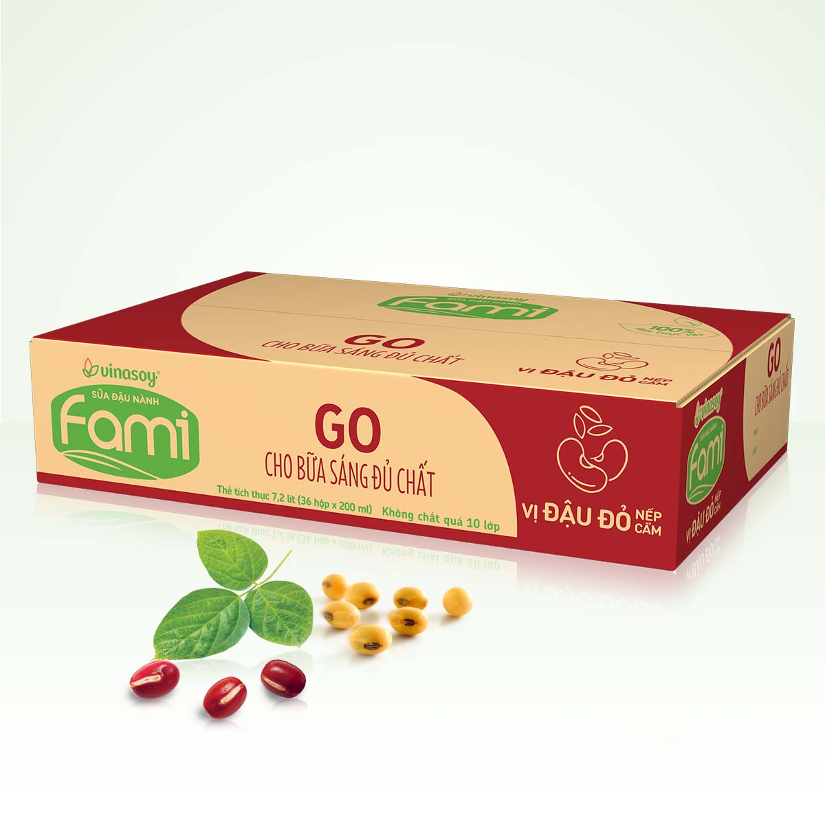 Mua tại Tiktok- Thùng Sữa Đậu Nành Famigo Đậu Đỏ Nếp Cẩm (200ml x 36 Hộp) được làm từ 100% đậu nành hạt chọn lọc, không biến đổi Gen (Non - GMO).
