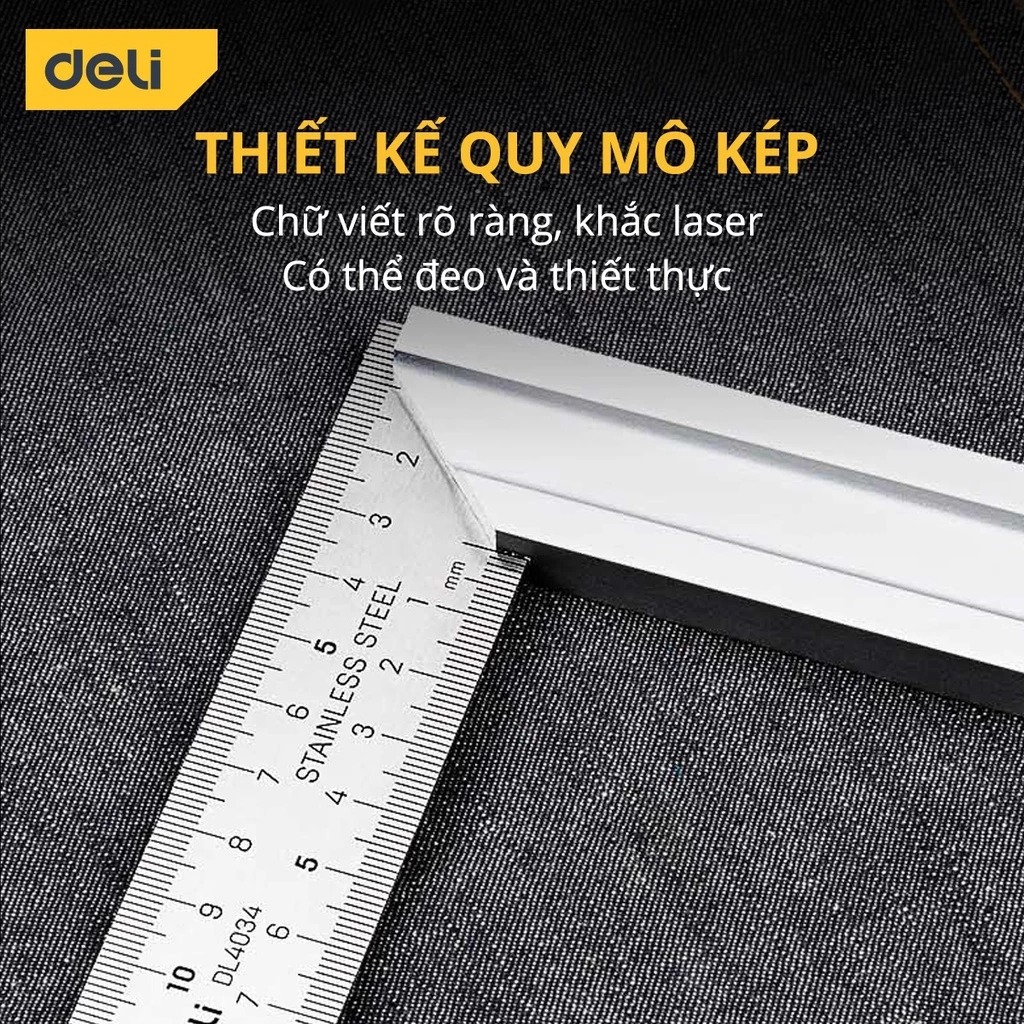 ✨Thước Vuông Góc Kim Loại Deli Kích Thước 200mm - Sử Dụng Đo Đạc Trong Xây Dựng, Sửa Chữa Nhà Cửa - DL4034