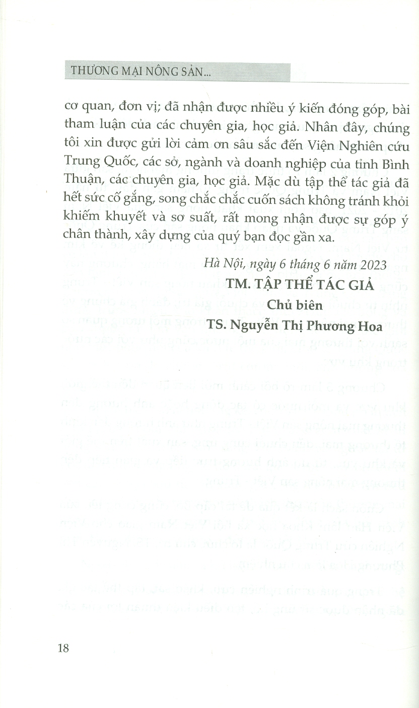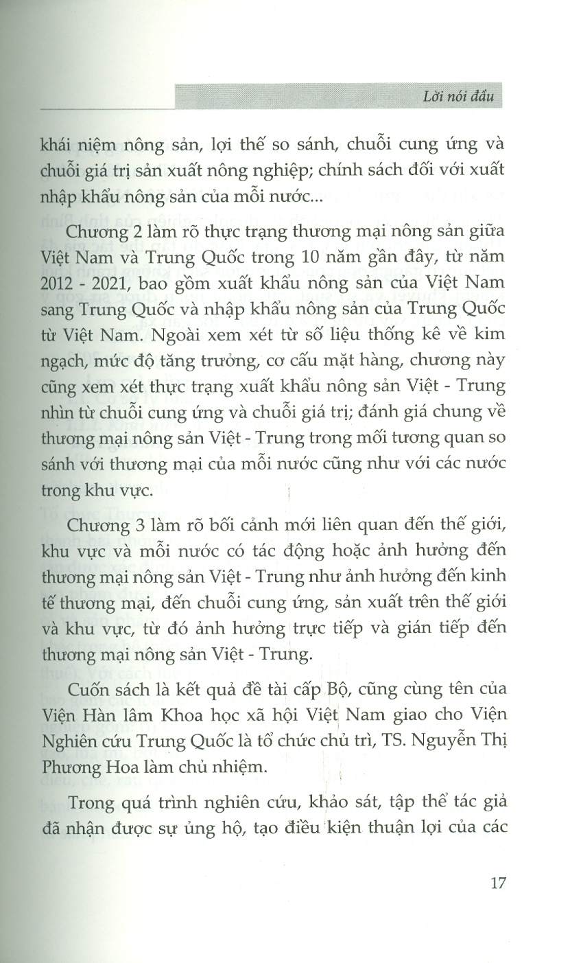 ✨Thương Mại Nông Sản Giữa Việt Nam Và Trung Quốc Trong Bối Cảnh Mới (Sách chuyên khảo) - TS. Nguyễn Thị Phương Hoa (Chủ biên)