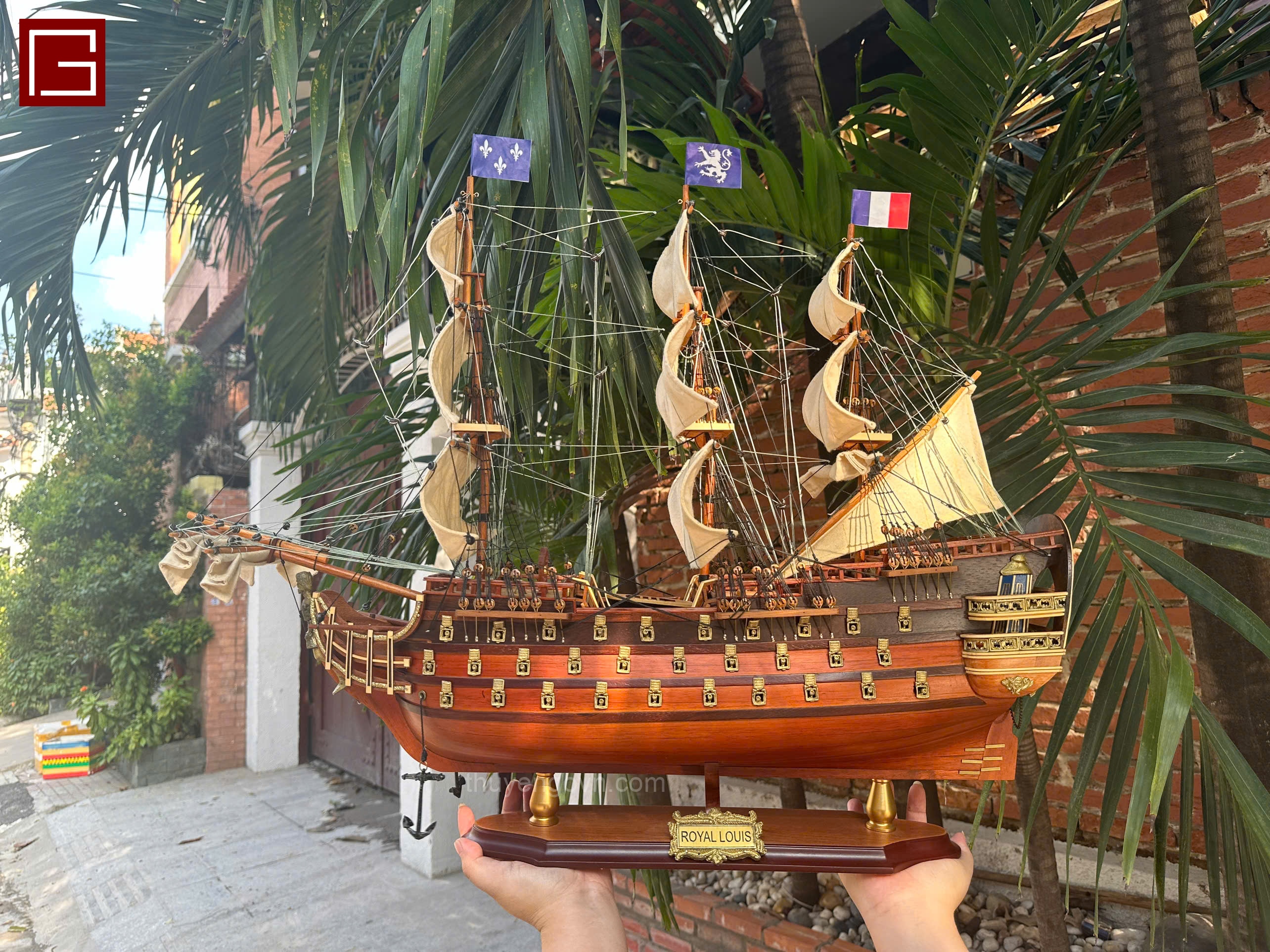 MÔ HÌNH THUYỀN CỔ FRANCE II - TÀU BUỒM CỦA PHÁP - Mô hình thuyền cổ FRANCE II có 4 kích thước 0.07m3, 0.16m3, 0.23m3 và 0.30m3: +0.07m3 có kích thước là: Chiều dài: 70cm