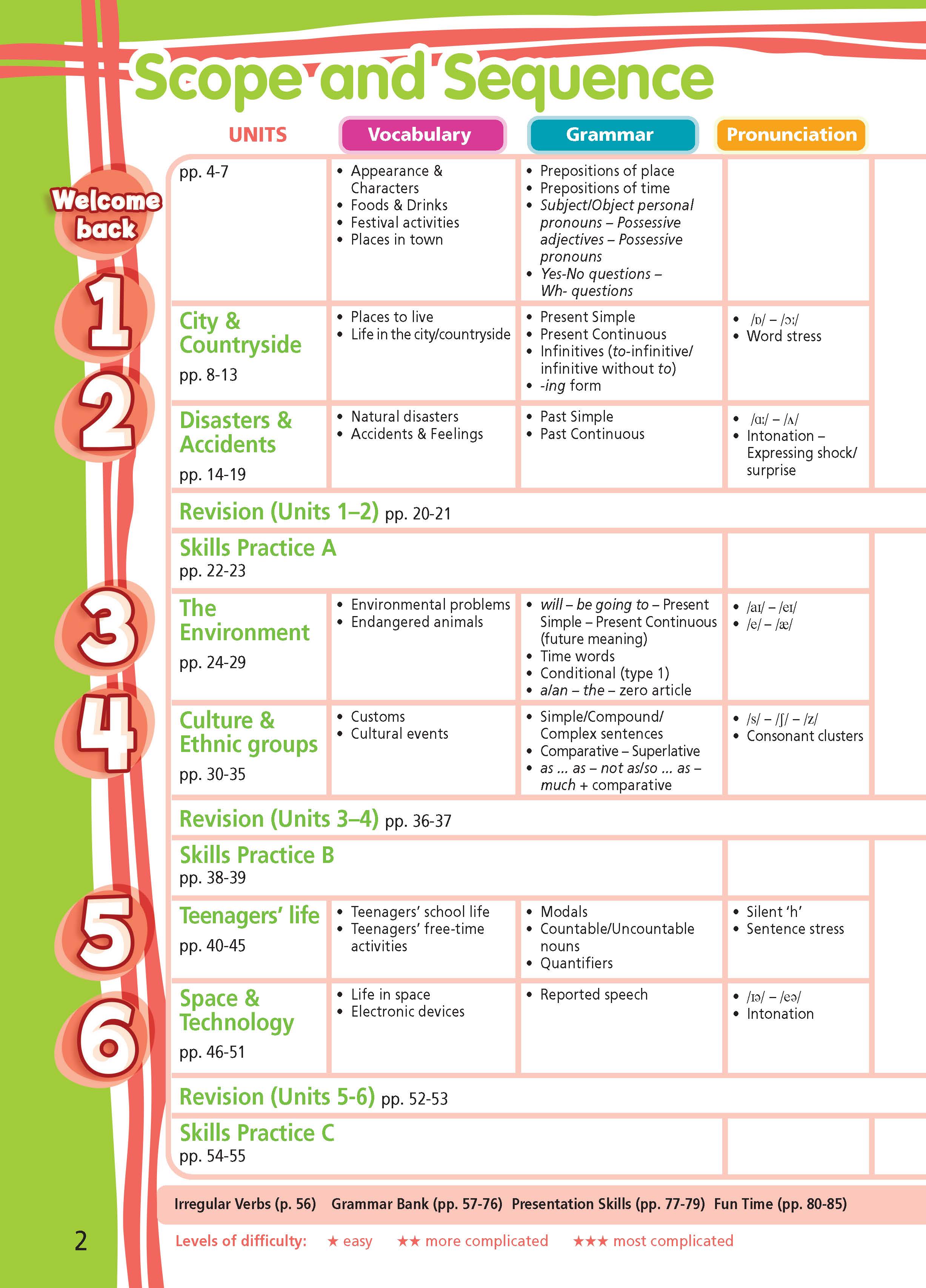 Provides more practice to consolidate the Student Book Picture Dictionary (Levels 1-4) helps with vocabulary practice Grammar Reference Guide (Levels 5-6) offers more practice, and allows students and teachers to check grammar rules
