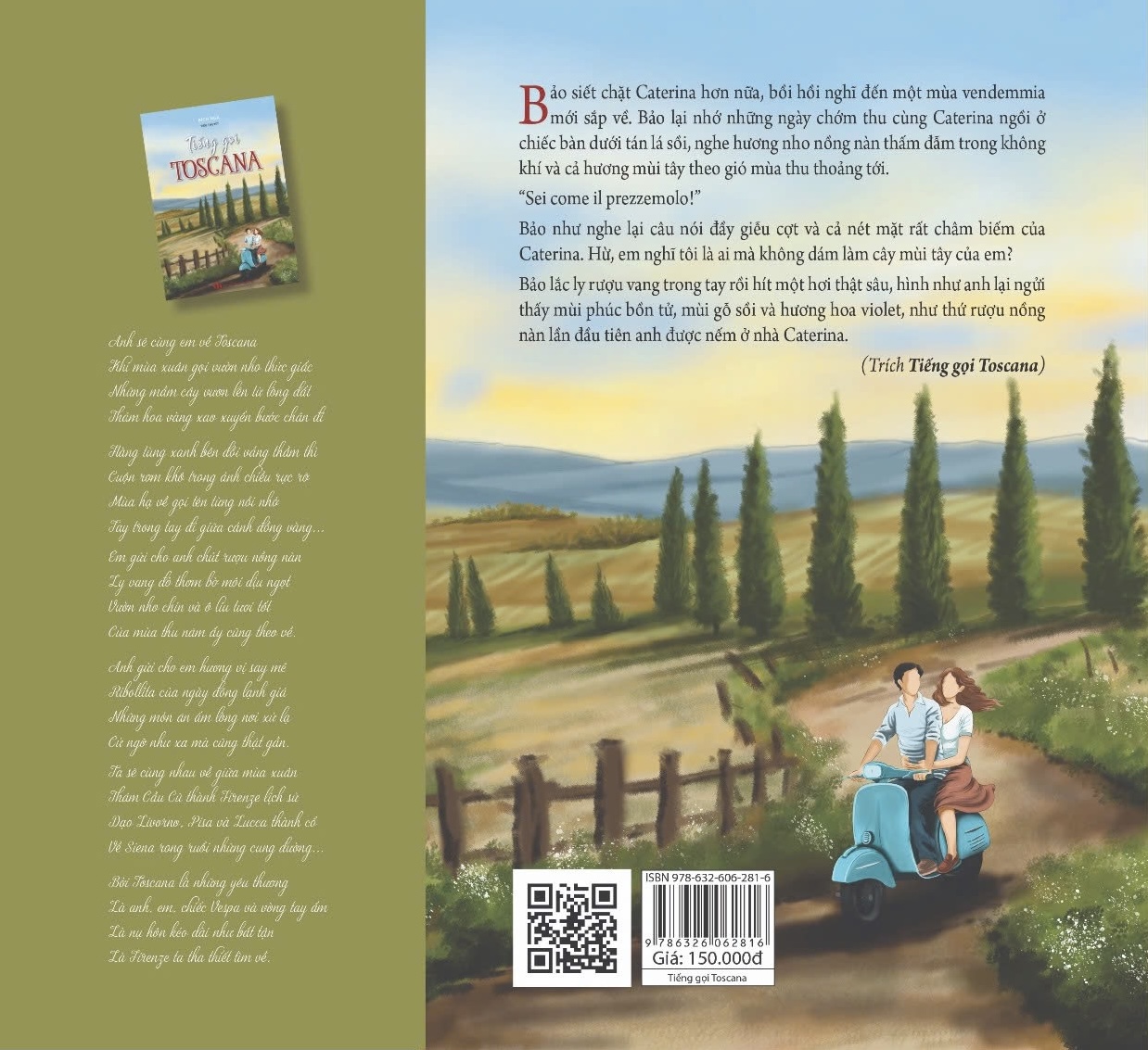 TIẾNG GỌI TOSCANA không chỉ đơn thuần là một câu chuyện tình yêu lãng mạn và hài hước, còn là rất nhiều sắc thái tâm trạng từ cuộc sống và biến cố của các nhân vật. Qua cuốn tiểu thuyết này, các bạn cũng có cơ hội được trải nghiệm một nước Ý xinh đẹp và thơ mộng trên trang sách, đặc biệt là vùng đất thơ mộng Toscana - cái nôi của nghệ thuật Phục Hưng, rượu vang và nền ẩm thực đậm chất truyền thống.