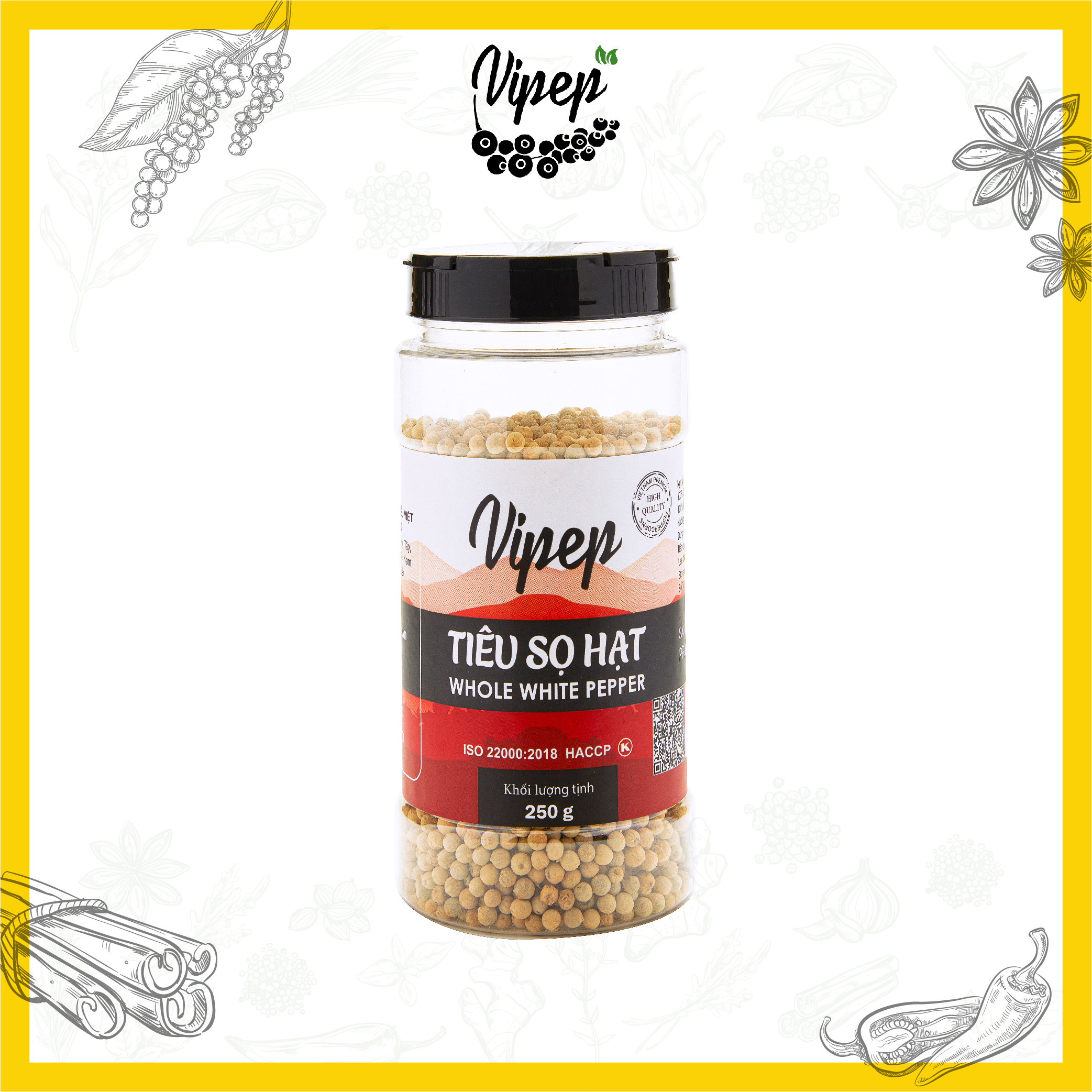✨Tiêu Sọ Hạt Tự Nhiên Vipep Hũ Nhựa 250g