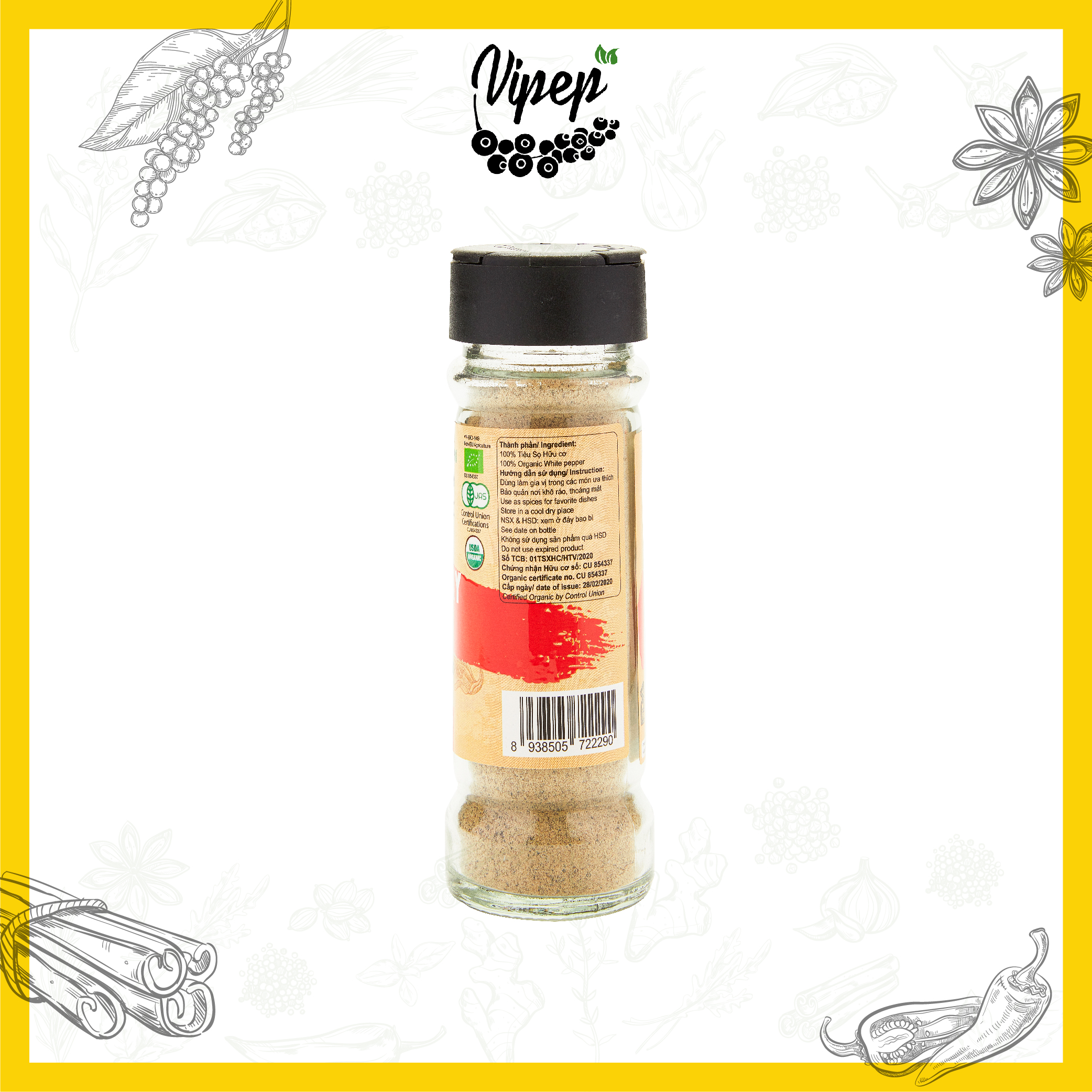 ✨Tiêu Sọ Xay Farmers' Organic Vipep Hũ Thủy Tinh 50g - Gia vị Vipep