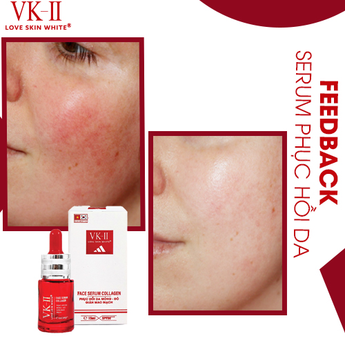 Tinh chất dưỡng phục hồi da mỏng đỏ, dị ứng VK-II Love Skin White Face Serum Collagen 15ml THÔNG TIN CHI TIẾT VỀ SERUM DƯỠNG PHỤC HỒI DA MỎNG ĐỎ, DỊ ỨNG VK-II - Thương