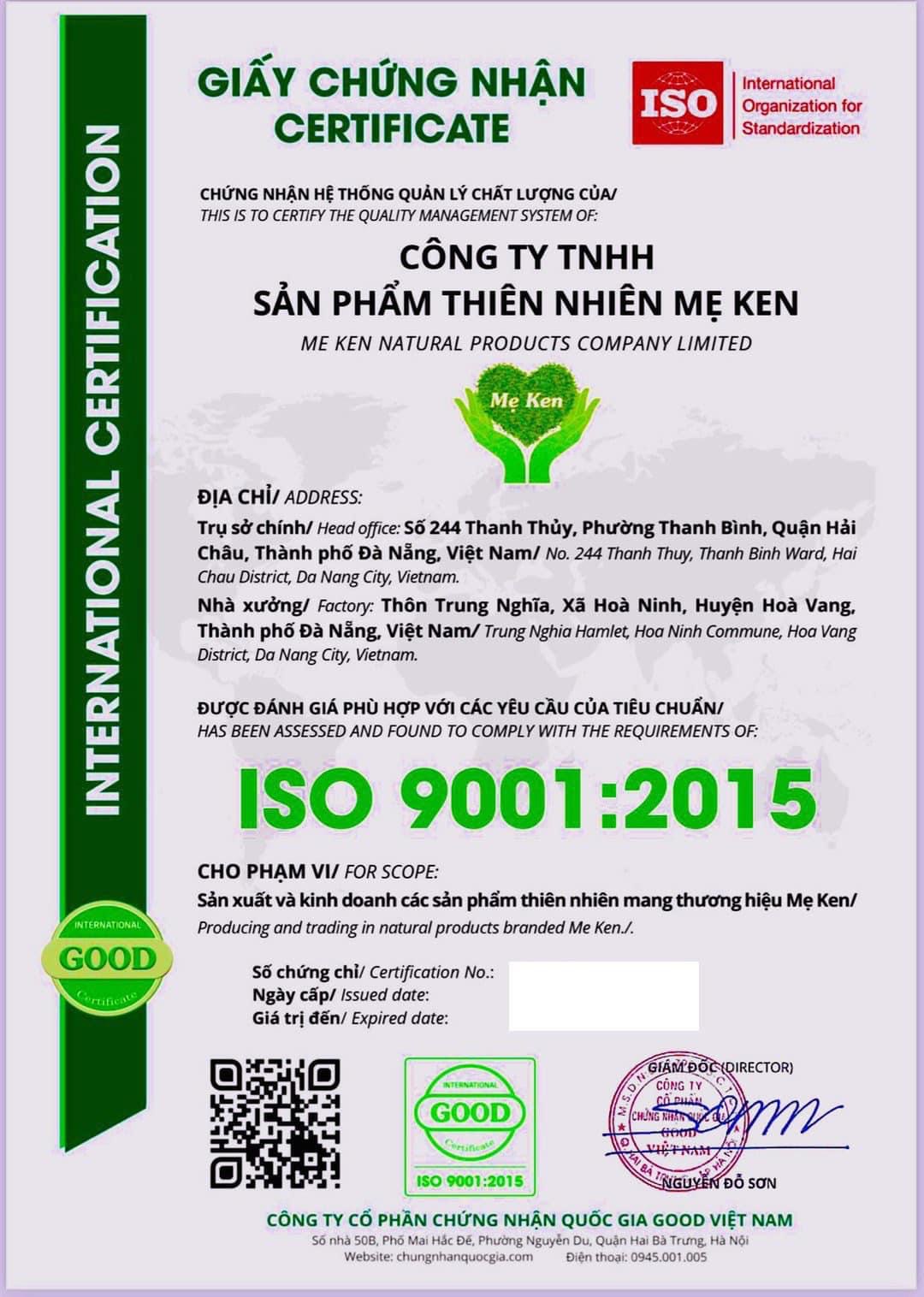 - Nhà sản xuất: công ty TNHH sản phẩm thiên nhiên Mẹ Ken.