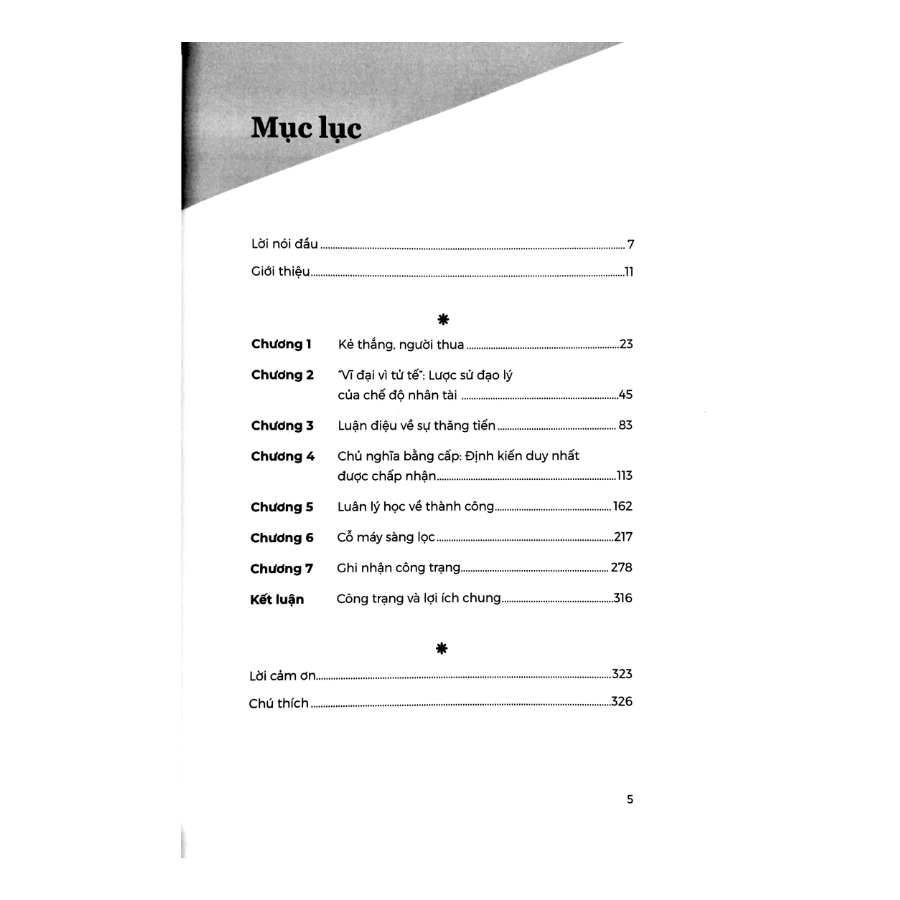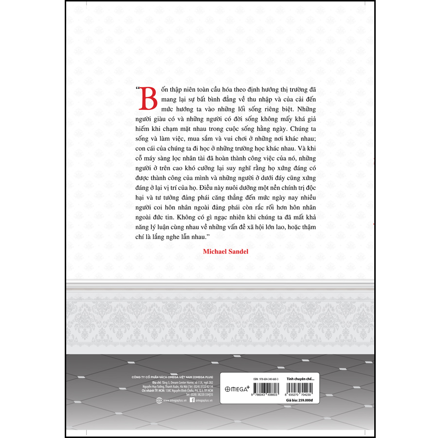 Trong cuốn sách này, tác giả Michael Sandal cho rằng nguyên nhân sâu xa của thực trạng trên là do chế độ “trọng dụng”, “ưu ái” nhân tài mà ra. Khi chỉ những người tài năng, có những đóng góp nổi bật cho xã hội được ưu ái và gặt hái thành công, số đông bình thường còn lại sẽ cảm thấy bị bỏ rơi, bị gạt ra ngoài lề. Khi tấm bằng đại học từ các trường danh giá là cơ hội đổi đời và nâng cao vị thế xã hội, người ta sẽ tìm mọi cách để kiếm được tấm bằng đó, kể cả với những phương thức bất chính. Lợi ích, tài năng cá nhân trở thành thứ quan trọng được ưu tiên hàng đầu, còn lợi ích chung chỉ là những lời sáo rỗng của các chính trị gia dân túy. Giấc mơ Mỹ giờ này càng trở nên xa vời với mọi người.