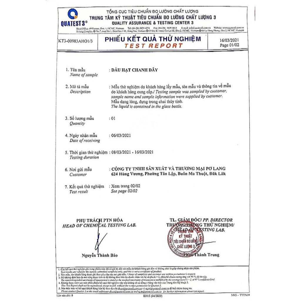 Mua tại TiktokDầu hạt chanh dây ép lạnh được sản xuất từ hạt chanh dây Việt Nam. (Sản phẩm không phải là thuốc và không có tác dụng thay thế thuốc chữa bệnh.)
