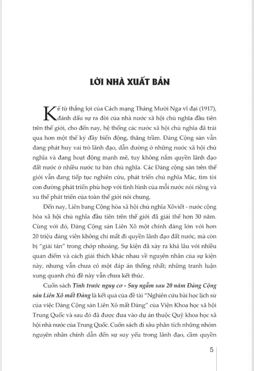 Tính trước nguy cơ - Suy ngẫm sau 20 năm Đảng Cộng sản Liên Xô mất đảng" là một tác phẩm nghiên cứu sâu rộng, cung cấp cái nhìn toàn diện về sự sụp đổ