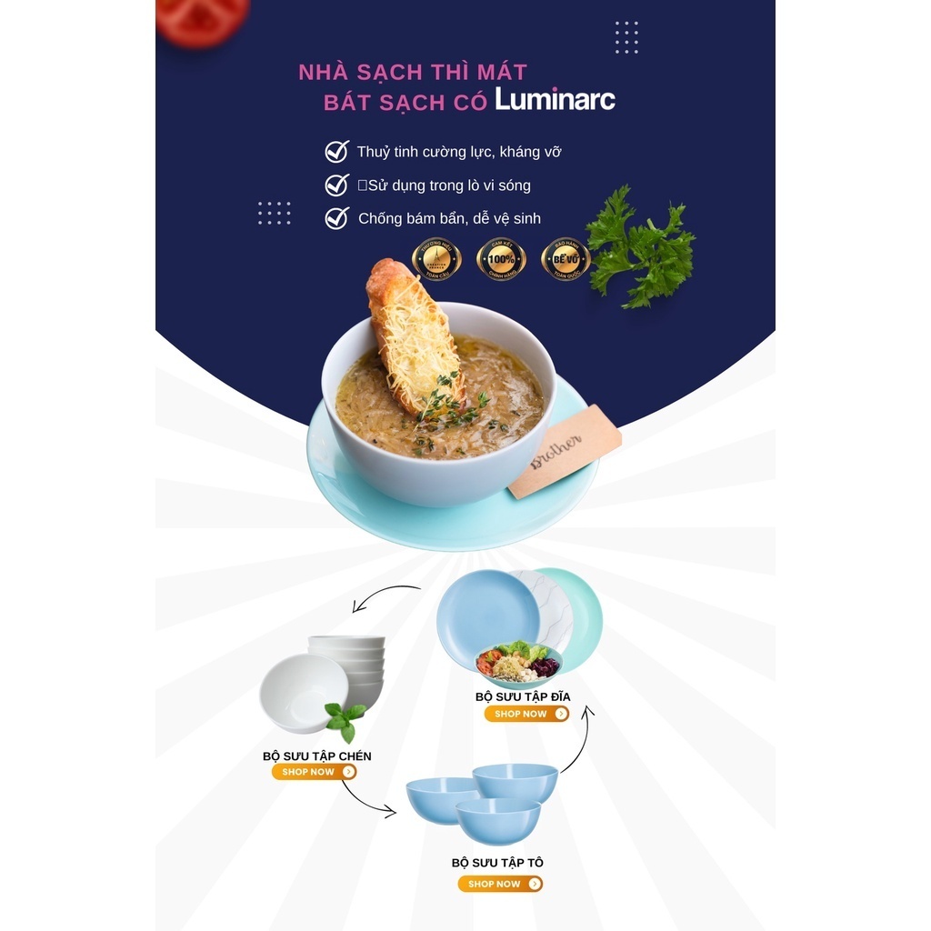 Tô Thủy Tinh Luminarc Diwali Precious 18CM. - Quy cách : 3 cái. - Kích thước: 18 cm. - Chất liệu: Thuỷ tinh opal, cường lực, kháng vỡ. - Có thể sử dụng trong lò