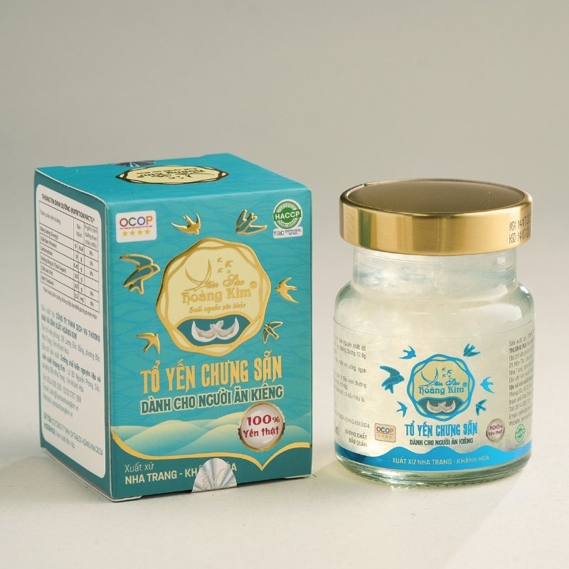 Yến Sào Hoàng Kim - Giải Pháp Dinh Dưỡng Lành Mạnh Cho Người Ăn Kiêng & Tiểu Đường Việc duy trì chế độ ăn uống lành mạnh không còn là một thử thách khi đã có Tổ Yến Chưng Sẵn Dành Cho Người Ăn Kiêng từ Yến Sào Hoàng Kim. Sản phẩm được nghiên cứu đặc biệt, hoàn toàn không sử dụng đường, thay thế bằng vị ngọt tự nhiên từ cỏ ngọt. Đây là lựa chọn hoàn hảo để bổ sung dinh dưỡng, tăng cường sức khỏe mà không gây ảnh hưởng đến cân nặng hay chỉ số đường huyết. Điểm Vượt Trội Của Sản Phẩm: -     Vị Ngọt Tự Nhiên, An Toàn Từ Cỏ Ngọt: Sản phẩm sử dụng 100% chiết xuất cỏ ngọt tự nhiên để tạo vị ngọt, không chứa calo, là lựa chọn lý tưởng cho người đang trong chế độ ăn kiêng, giảm cân hoặc cần kiểm soát đường huyết. -     Chất Lượng Được Nhà Nước Bảo Chứng OCOP 4 Sao: Được UBND tỉnh Khánh Hòa chứng nhận OCOP 4 sao năm 2024, khẳng định chất lượng và độ an toàn của sản phẩm. -     An Toàn Tuyệt Đối - Không Chất Bảo Quản: Sản xuất theo quy trình đạt chuẩn quốc tế HACCP , cam kết không sử dụng chất bảo quản, đảm bảo sự tinh khiết và an toàn cho người dùng. -     Hỗ Trợ Sức Khỏe & Vóc Dáng: Cung cấp nguồn dưỡng chất quý giá từ yến sào nguyên chất, giúp cơ thể khỏe mạnh, tỉnh táo mà không làm bạn đi chệch hướng khỏi mục tiêu vóc dáng của mình. Thông Tin Chi Tiết Sản Phẩm: Thương hiệu: Yến Sào Hoàng Kim Xuất xứ: Việt Nam Thành phần: Nước (68.5g), yến sào nguyên chất (1.5g yến khô, tương đương 12.6g yến tươi), cỏ ngọt, gừng tươi. Đối tượng sử dụng: Người ăn kiêng, người cần kiểm soát đường huyết, người theo đuổi lối sống lành mạnh. Hướng dẫn sử dụng: Lắc đều trước khi uống, ngon hơn khi uống lạnh. Nên dùng hết sau khi mở nắp. Hạn sử dụng: 12 tháng.