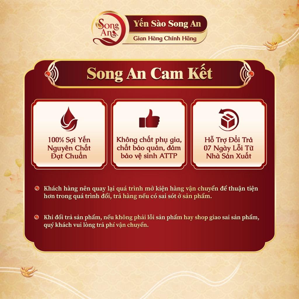 • Song An cam kết sản phẩm 100% yến nguyên chất đạt chuẩn.
