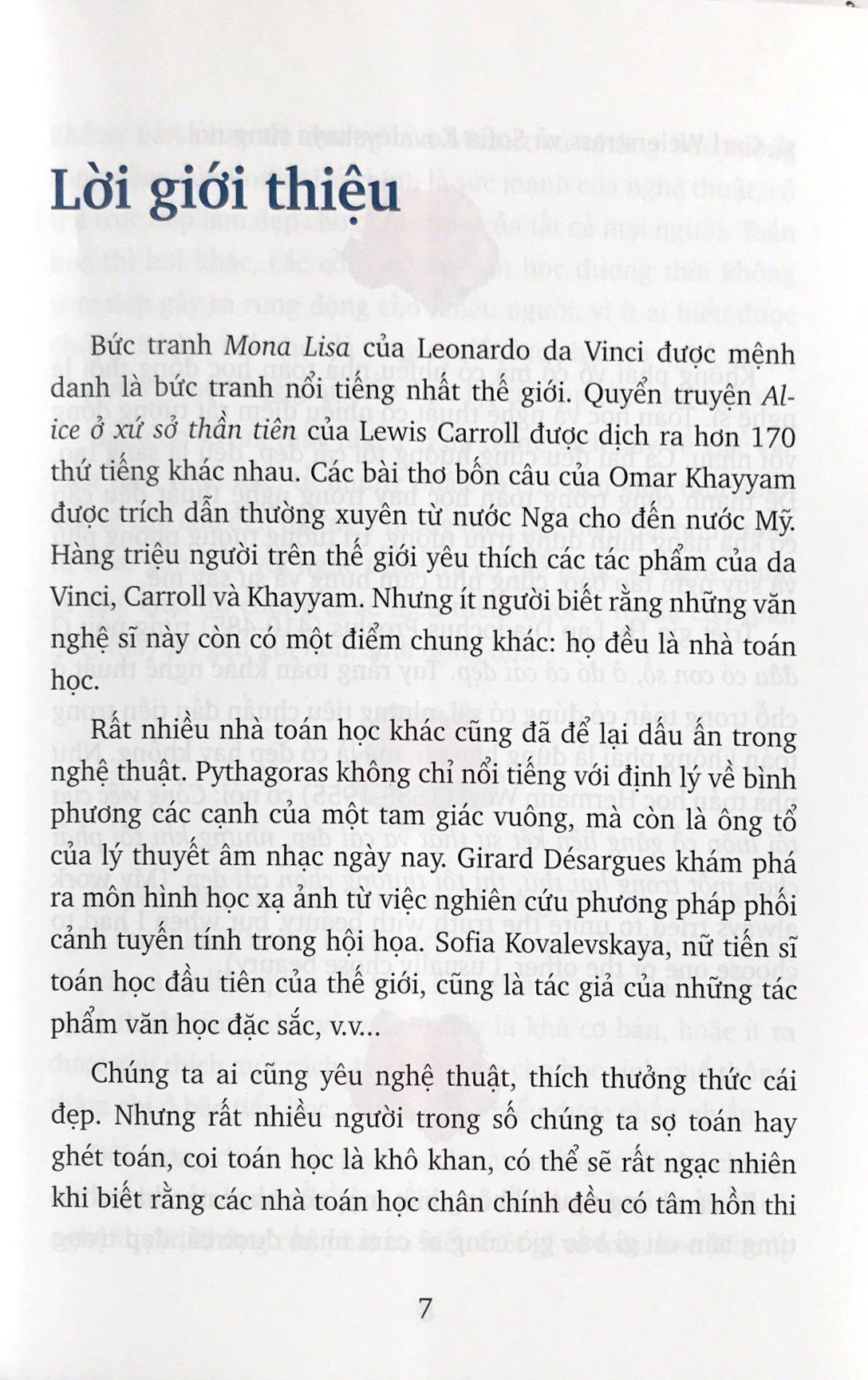Bức tranh Mona Lừa của Leonardo da Vinci được mệnh danh là bức tranh nổi tiếng nhất thế giới. Quyển truyện Alice ở xứ sở thần tiên của Lewis Carroll được dịch ra hơn 170 thứ tiếng khác nhau. Các bài thơ bốn câu của Omar Khayyam được trích dẫn thường xuyên từ nước Nga cho đến nước Mỹ. Hàng triệu ngưòi trên thế giới yêu thích các tác phẩm của da Vinci, Carroll và Khayyam. Nhưng ít người biết rằng những văn nghệ sĩ này còn có một điểm chung khác: họ đều là nhà toán học.