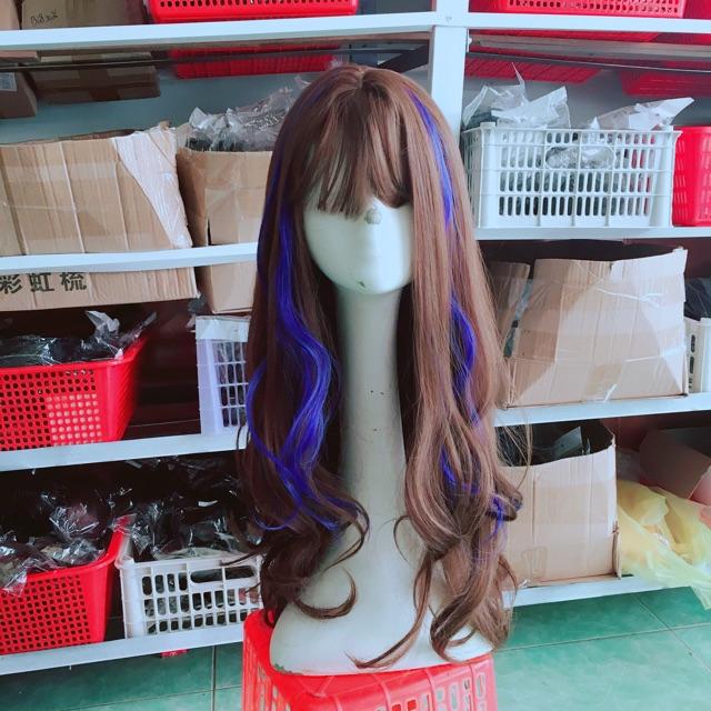 ✨Tóc giả móc line xanh dương cao cấp- tặng lưới chùm tóc- hình thật