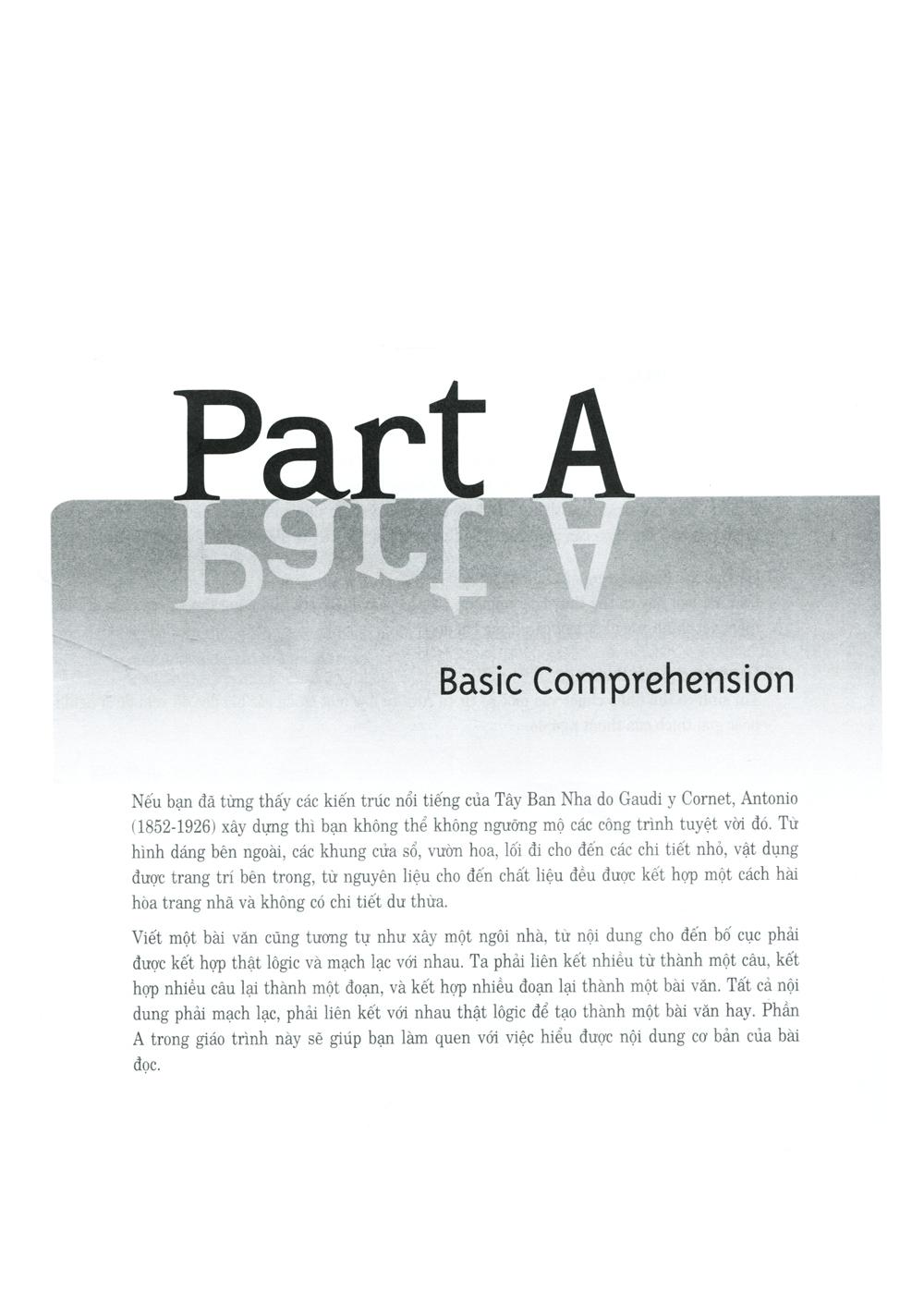 Part A: Basic Comprehension, Part B: Reading To Lean, và Part C: Making Inferences. Mỗi chương tập trung vào một dạng câu hỏi chuyên biệt thường xuất hiện trong bài thi TOEFL, và các chương trong giáo trình được liên kết với nhau một cách có hệ thống, thông qua đó học viên được tiếp xúc với các dạng câu hỏi được trình bày từ lý thuyết, chiến thật làm bài, đến các bài luyện tập và sau cùng là bài thực hành gần giống  với bài thi TOEFL thực tế nhằm giúp học viên nắm vững phương pháp học và nâng cao khả năng đọc hiểu.