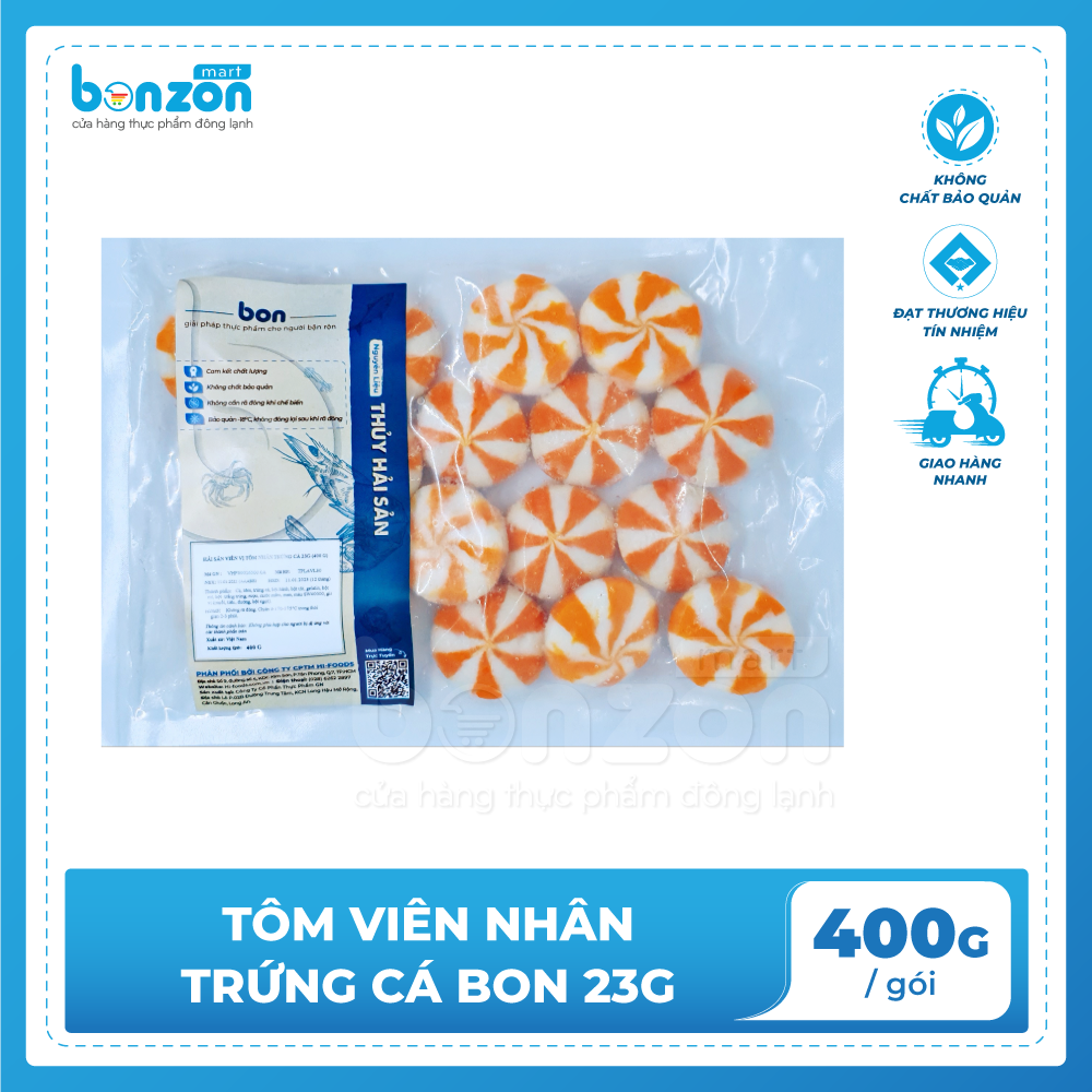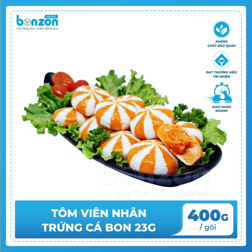 Mua tại TiktokVới sản phẩm tươi sống, trọng lượng thực tế có thể chênh lệch khoảng 10%. ĐỊNH LƯỢNG: 23g/cái x 400g/gói THÀNH PHẦN: Cá, tôm, trứng cá MÔ TẢ SẢN PHẨM: Vỏ ngoài tròn Có màu trắng sọc cam với có độ dai của chả cá nguyên chất , bên trong là nhân trứng cá tươi ngon cùng tiếng nổ đom đốp trong miệng của những viên trứng nhỏ CÁCH CHẾ BIẾN: Không rã đông. Chiên 165-170oC trong 3-4 phút, bỏ lẩu hoặc hấp ở 100oC trong 7-8 phút BẢO QUẢN: - Giữ đông từ -15 đến -18°C. Không đông lại sau khi rả đông - Bảo quản mát từ 0°C đến 5°C trong 3 ngày HSD: 12 tháng