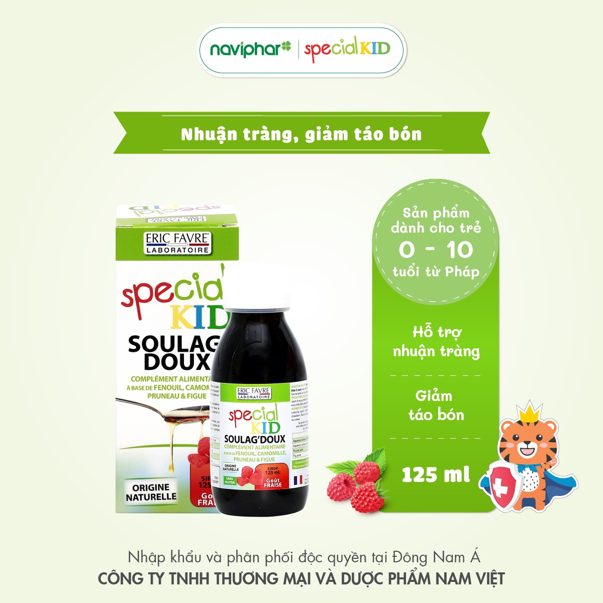 Siro hỗ trợ tiêu hóa tốt Nhuận tràng Giảm đầy hơi, khó tiêu, chướng bụng, giúp nhuận tràng, chống táo bón và giảm nguy cơ táo bón TPBVSK Special Kid Soulag'Doux / Special Kid Clam'Relieve