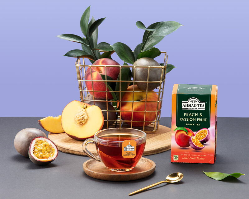 AHMAD TEA Peach & Passion Fruit Iced Tea.