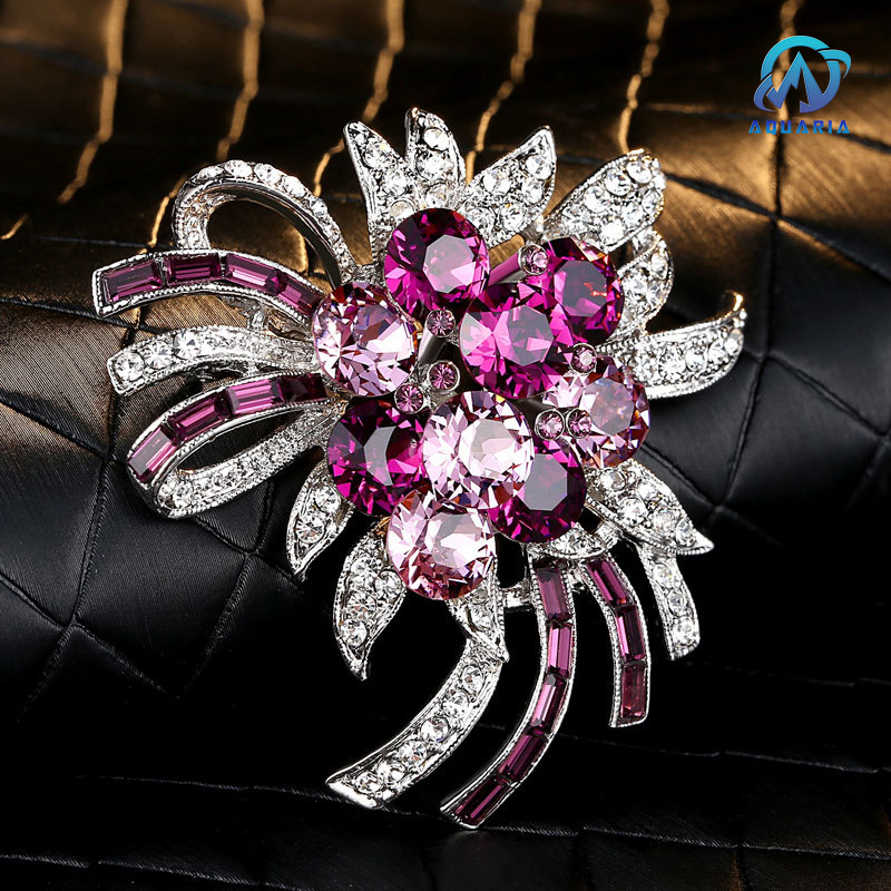 Trâm Cài Áo Nữ Quà Tặng Hoa Đá Đính Saphia Tím Tinh Tế Trang Nhã Sang Trọng (Kèm Hộp)