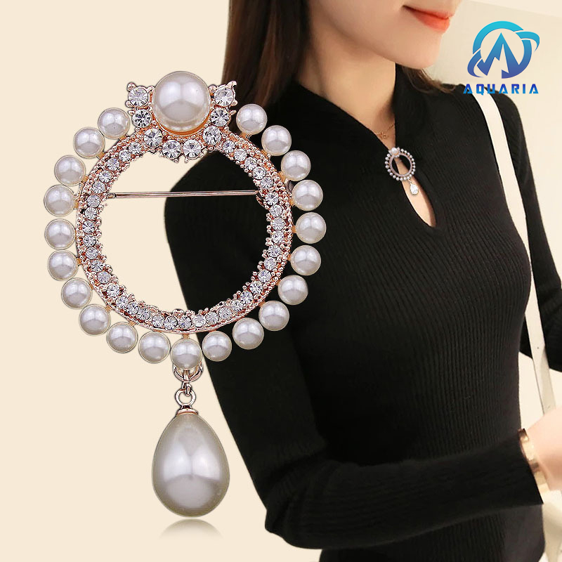 ✨Trâm Cài Áo Nữ Quà Tặng Vòng Ngọc Trai Đính Đá Trang Nhã Sang Trọng (Kèm Hộp)