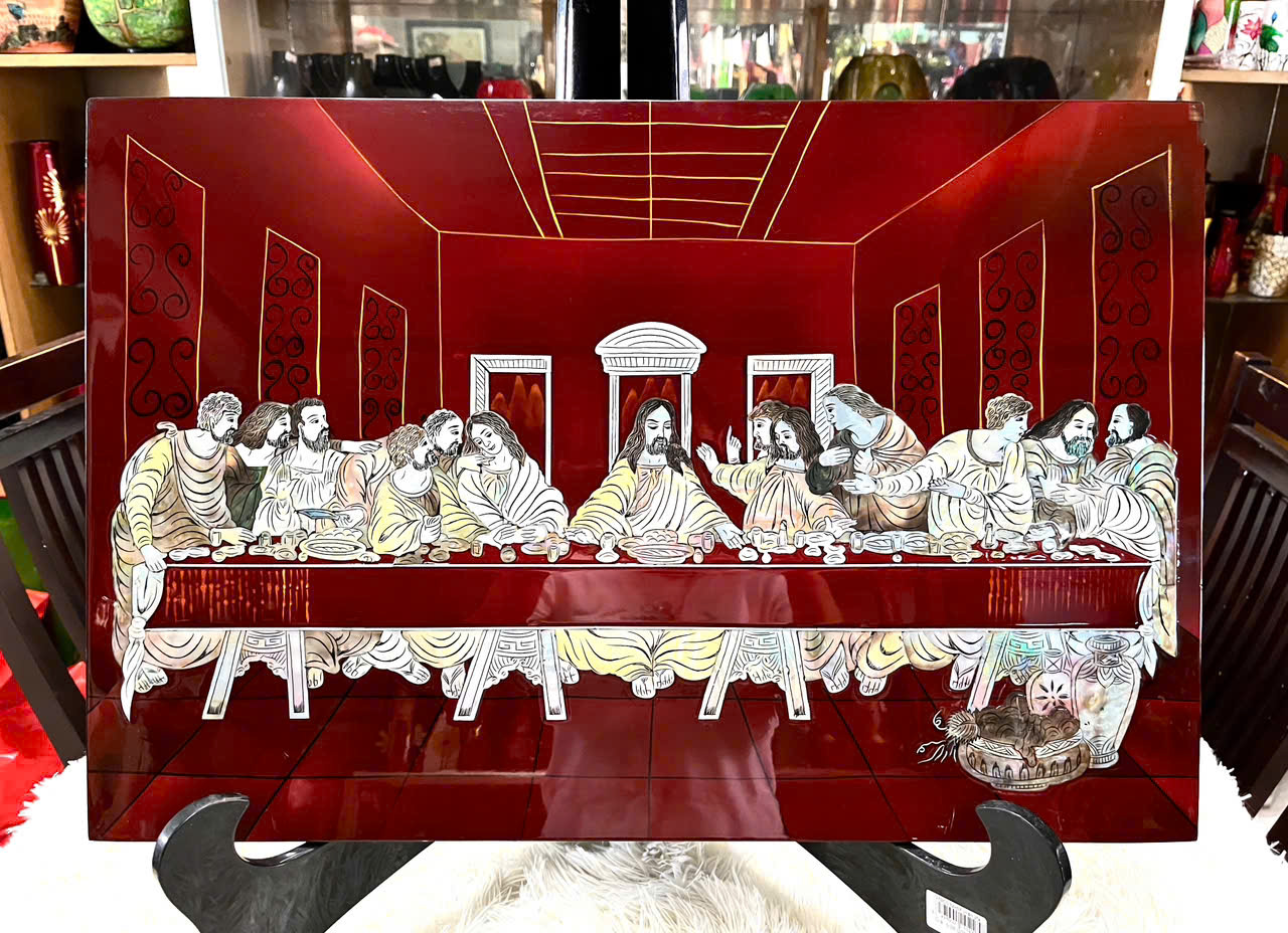 Mua tại Tiktok️ Biểu tượng thiêng liêng – Tuyệt tác nghệ thuật Công giáo Bức tranh sơn mài “Buổi Tiệc Ly” khắc họa khoảnh khắc thiêng liêng trong Kinh Thánh khi Chúa Giê-su dùng bữa cuối cùng cùng các tông đồ. Tác phẩm được thể hiện bằng kỹ thuật khảm cừ cao cấp và ốc chìm thủ công tỉ mỉ, tạo nên chiều sâu ánh sáng và giá trị nghệ thuật vượt thời gian. Chất liệu thủ công cao cấp – Chuẩn hàng xuất khẩu