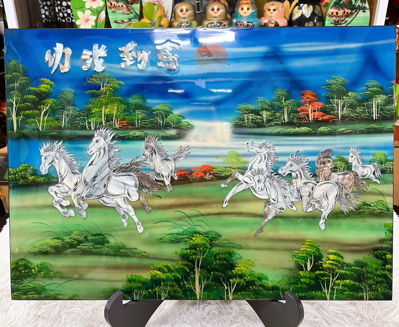 Tranh MÃ ĐÁO THÀNH CÔNG (Bát Mã) Khảm (Cẩn) Ốc Xà Cừ - Đẹp Tuyệt Kỹ