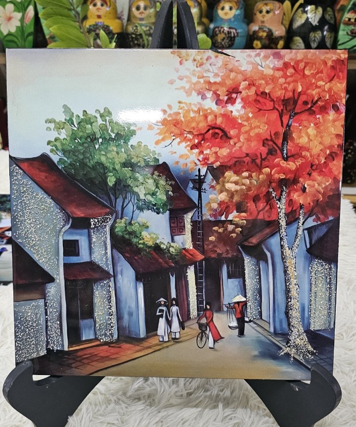 ✨Tranh Sơn Mài - PHỐ CỔ VIỆT NAM | Size 30x30 cm | Hoài Niệm Thời Gian – Nghệ Thuật Sơn Mài Truyền Thống
