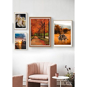 Bộ tranh gồm 04 tranh, chất liệu in PP theo tiêu chuẩn artwork công nghệ Hàn Quốc