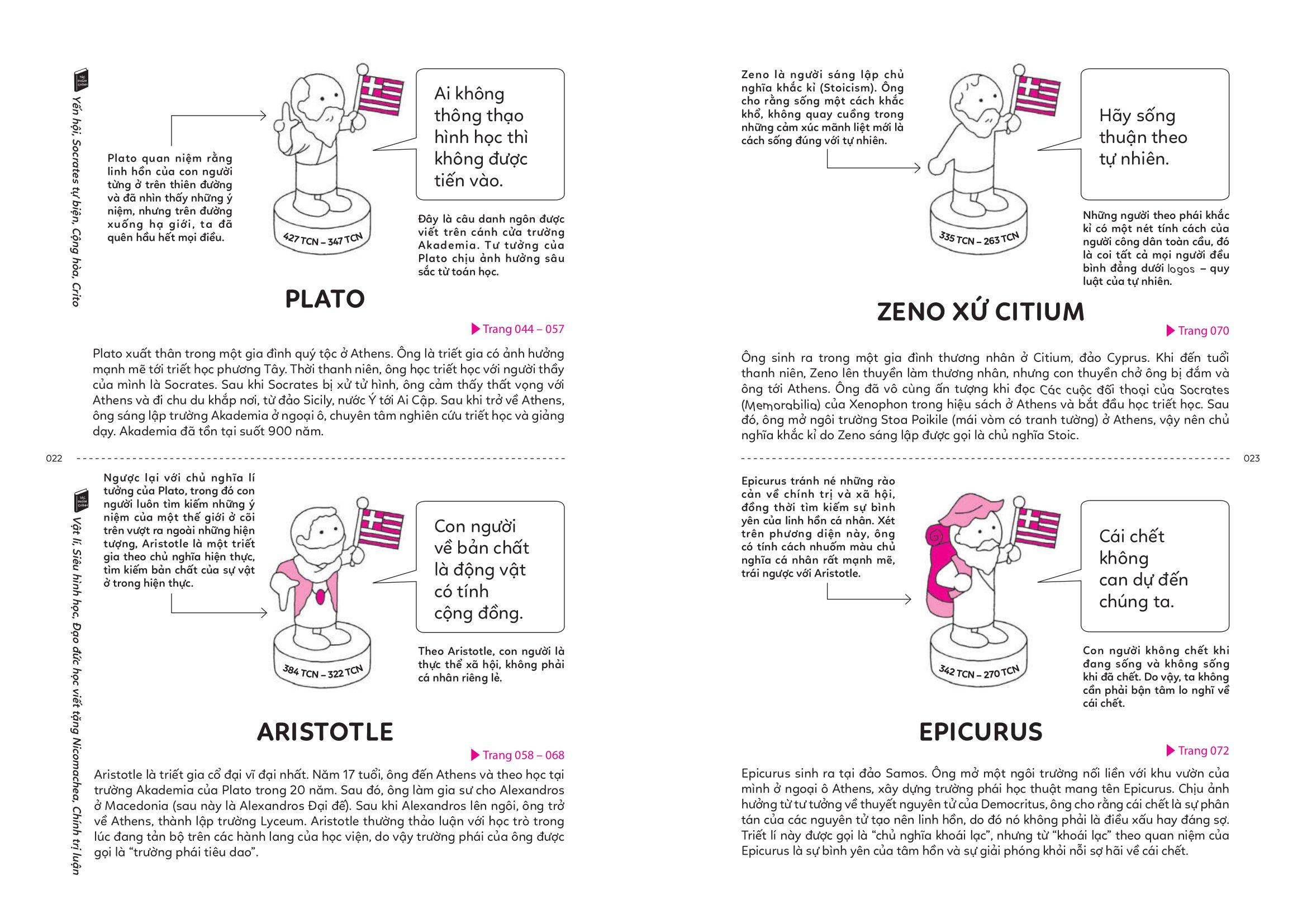 “Cuốn sách không phải là một cuốn giáo trình lịch sử triết học, dù bạn đọc hoàn toàn có thể theo dõi tiến trình vận động của triết học theo trục thời gian, khởi đầu từ các bậc tiền nhân thời cổ đại cho đến những tên tuổi đang được khai thác, bàn luận nhiều trong triết học đương đại như Jacques Derrida, Michel Foucault, Gilles Deleuze hay Judith Butler. Cuốn sách giúp các bạn hình dung về lịch sử triết học như những đối thoại không ngừng xung quanh các câu hỏi dường như không có câu trả lời cuối cùng, nhưng chính vì thế, chúng thôi thúc ta phải tiếp tục suy tư, nghiền ngẫm và chất vấn. Nỗ lực tư duy này xác nhận sự tồn tại của chúng ta với tư cách là con người, như mệnh đề nổi tiếng của triết gia người Pháp, René Descartes (1596 – 1650): “Tôi tư duy nên tôi tồn tại.” (Tiến sĩ Trần Ngọc Hiếu)