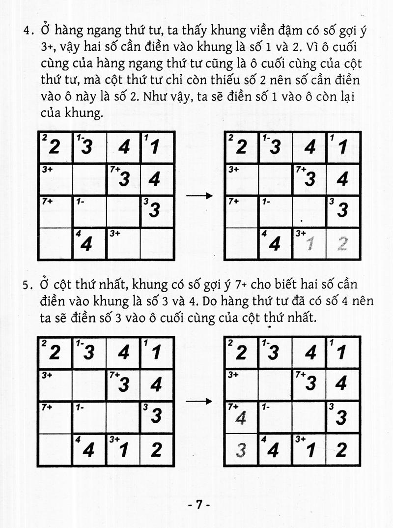 Ngoài ra sách còn có phần hướng dẫn cách chơi và một vài mẹo nhỏ giúp người chơi có thể giải quyết các ô số một cách dễ dàng hơn.