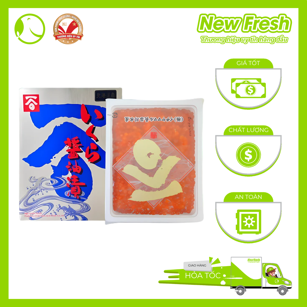 • Hướng dẫn sử dụng: dùng sashimi, ăn kèm với cháo,… Trứng cá hồi Nhật được người Nhật Bản sử dụng thường xuyên trong bữa ăn hằng ngày và đã trở nên phổ biến trên thế giới được xem là loại thực phẩm cao cấp và có hàm lượng dinh dưỡng cao​. Không chỉ nổi tiếng ở Nhật Bản mà trứng cá Hồi còn đuọc ưa thích ở thị trường ở các nước Châu Á. Cùng New Fresh tìm hiểu loại trứng cá đặc biệt và dinh dưỡng này nhé! Đặc điểm của trứng cá hồi Nhật Được lấy ra từ bụng có hồi sau đó đem ướp với muối hoặc nước muối để bảo quản. Mọi quy trình từ đánh bắt, sơ chế, tách trứng đến đóng hộp đều đảm bảo vệ sinh an toàn thực phẩm, sau đó được cấp đông theo theo điều kiện xuất khẩu để đảm bảo hương vị của trứng cá khi rã đông vẫn thơm và ngon. Trứng cá có màu cam tươi, hình tròn bóng. Khi còn tươi ăn trứng có ít vị mặn, giòn sựt - không tanh là loại thực phẩm ít béo rất tốt cho sức khỏe Đây là nguyên liệu khét tiếng với món sashimi hay sushi, vì khi ăn cách này sẽ cảm nhận trọn vẹn hương vị nguyên bản của trứng cá. Không nên chế biến với nhiệt độ cao vì khi đó trứng bị vỡ mất đi hương vị và dưỡng chất. Công dụng đặc biệt của Trứng cá hồi Nhật đối với sức khỏe. Nguồn dưỡng chất hảo hạng từ trứng cá hồi hỗ trợ các vấn đề của cơ thể, dặc biệt rất tốt cho da: