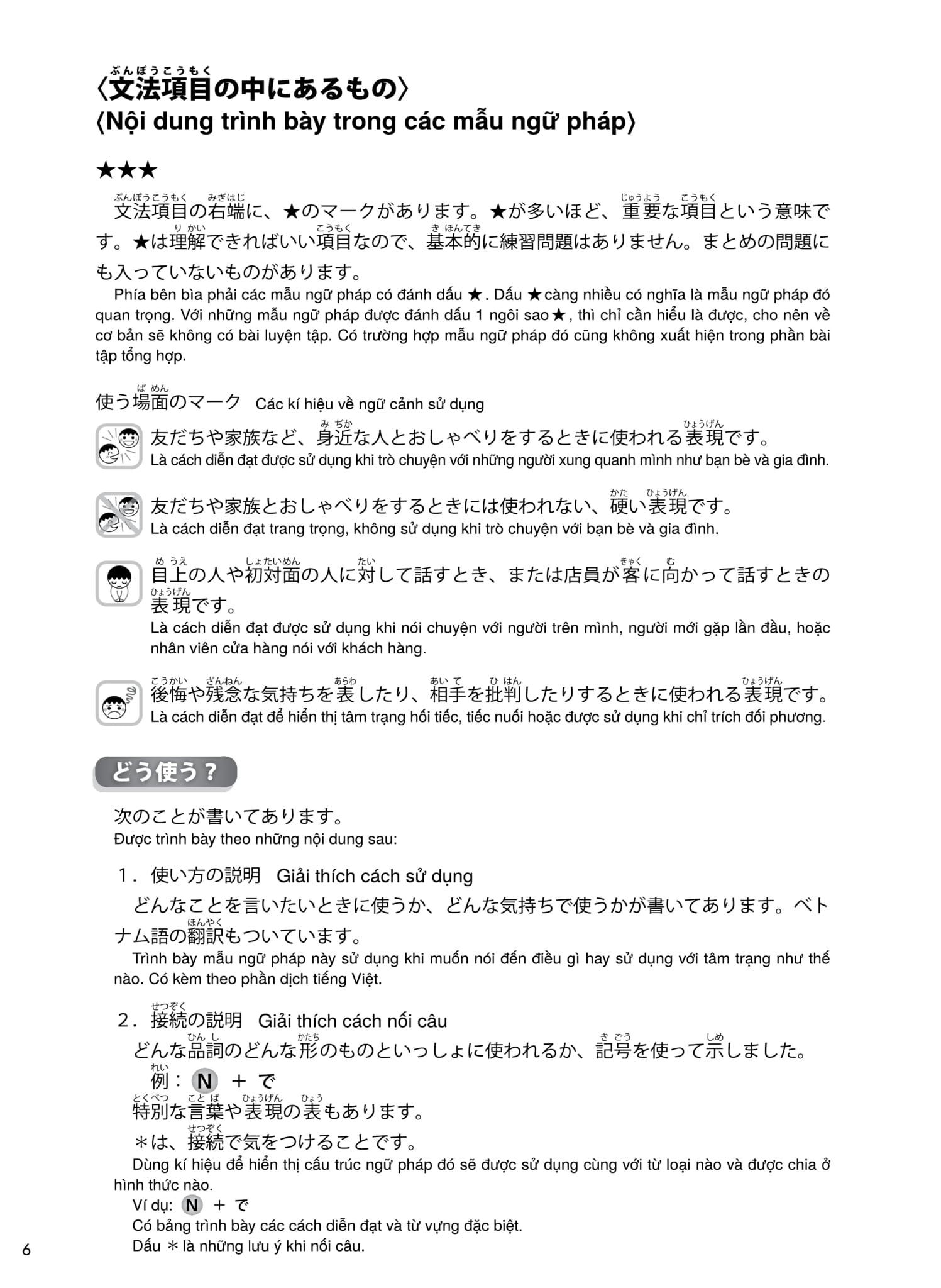 Bộ giáo trình này là tài liệu luyện thi thiết thực cho "Kỳ thi năng lực Nhật ngữ" các cấp độ từ N5 đến N1, giúp người học nắm chắc các điểm ngữ pháp và vận dụng chúng thông qua các bài luyện tập Nghe - Đọc.