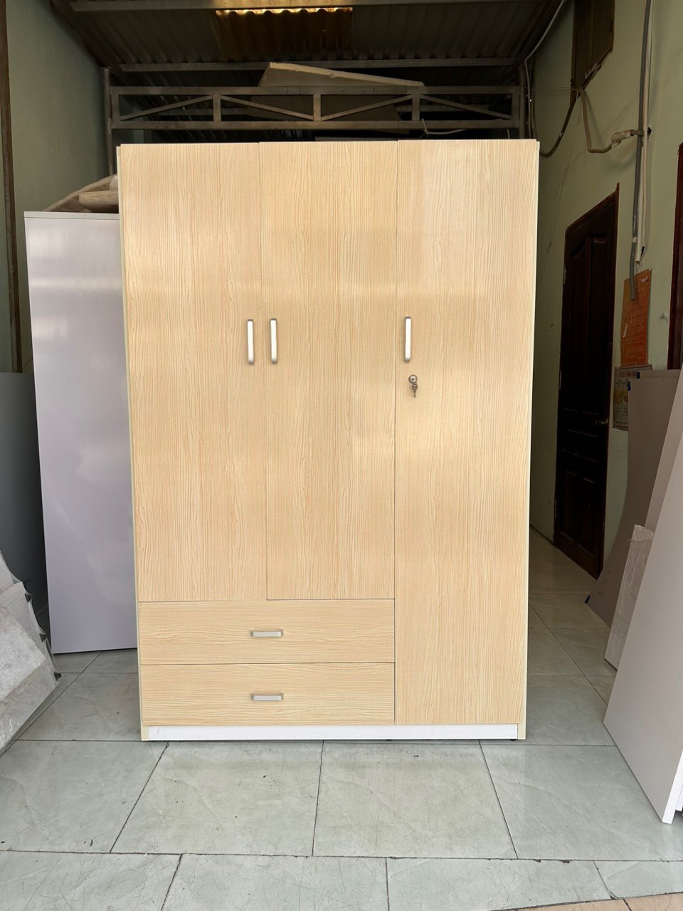 -kích thướt:ngang 115x cao 165x sâu 45 Phủ bì(nấp 45 hong 40cm ,tranh 3D 30k tấm dán dùm khách ạ) -Nếu bạn lo lắng tủ quá to k đem lên lầu được,hoặc đem lên tầng