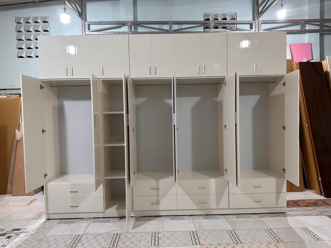 Tủ quần áo 4 cánh kệ trang trí 2m4x2m giá lại mềm anh chị tham khảo nha | Minh Khôi