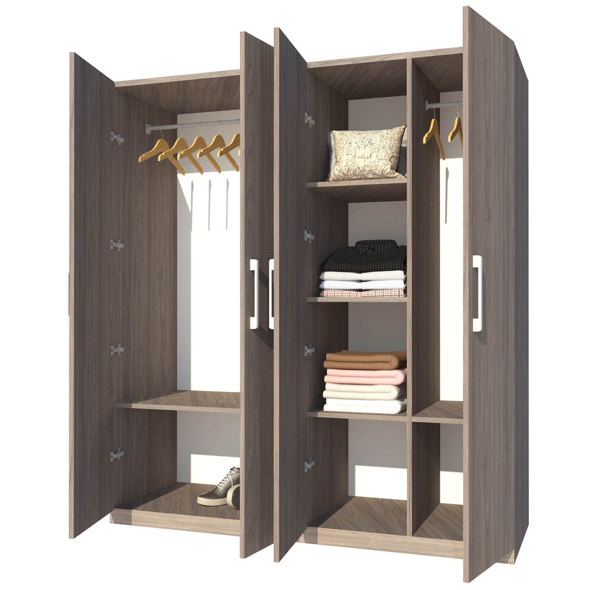 • Tủ chia thành 3 ngăn đứng và 4 cánh cửa giúp việc mở đóng nhẹ nhàng và tiện dụng.