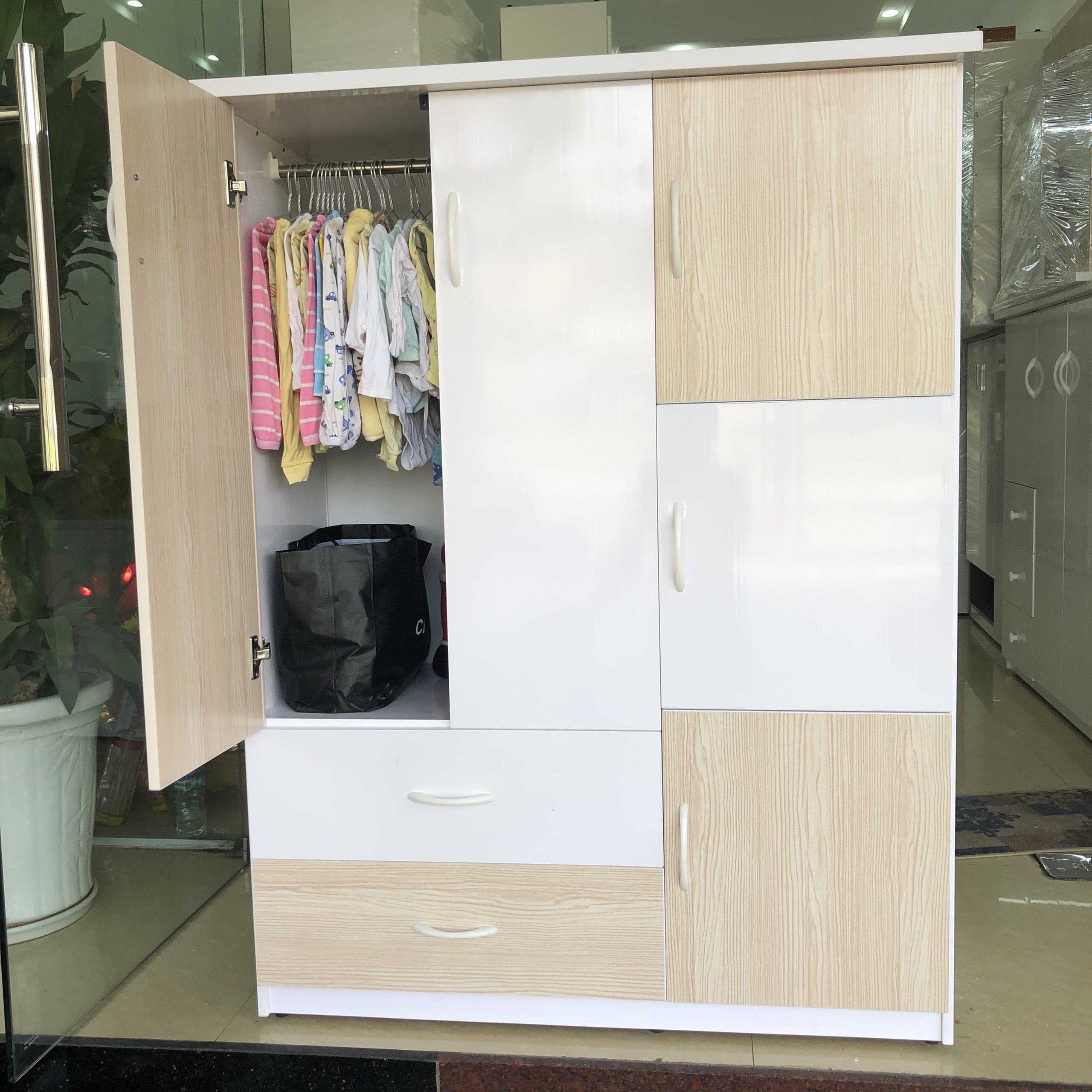 Tủ quần áo là món đồ nội thất thiết yếu trong phòng ngủ khi nó sẽ mang đến một không gian sinh hoạt tiện nghi cho con khi ở riêng. Tủ quần áo của HUCHU