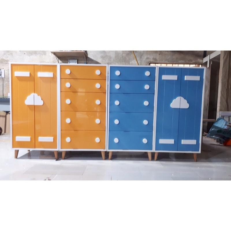 Tủ quần áo kết hợp kệ để đồ cho bé.