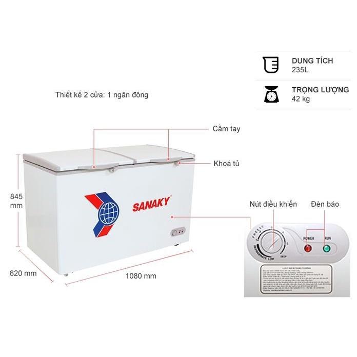 Giới thiệu Tủ đông lạnh Sanaky 235 lít VH 285A2, 1 ngăn đông, dàn lạnh nhôm Tủ đông lạnh Sanaky 235 lít sở hữu thiết kế hiện đại sang trọng Tủ đông lạnh Sanaky 235