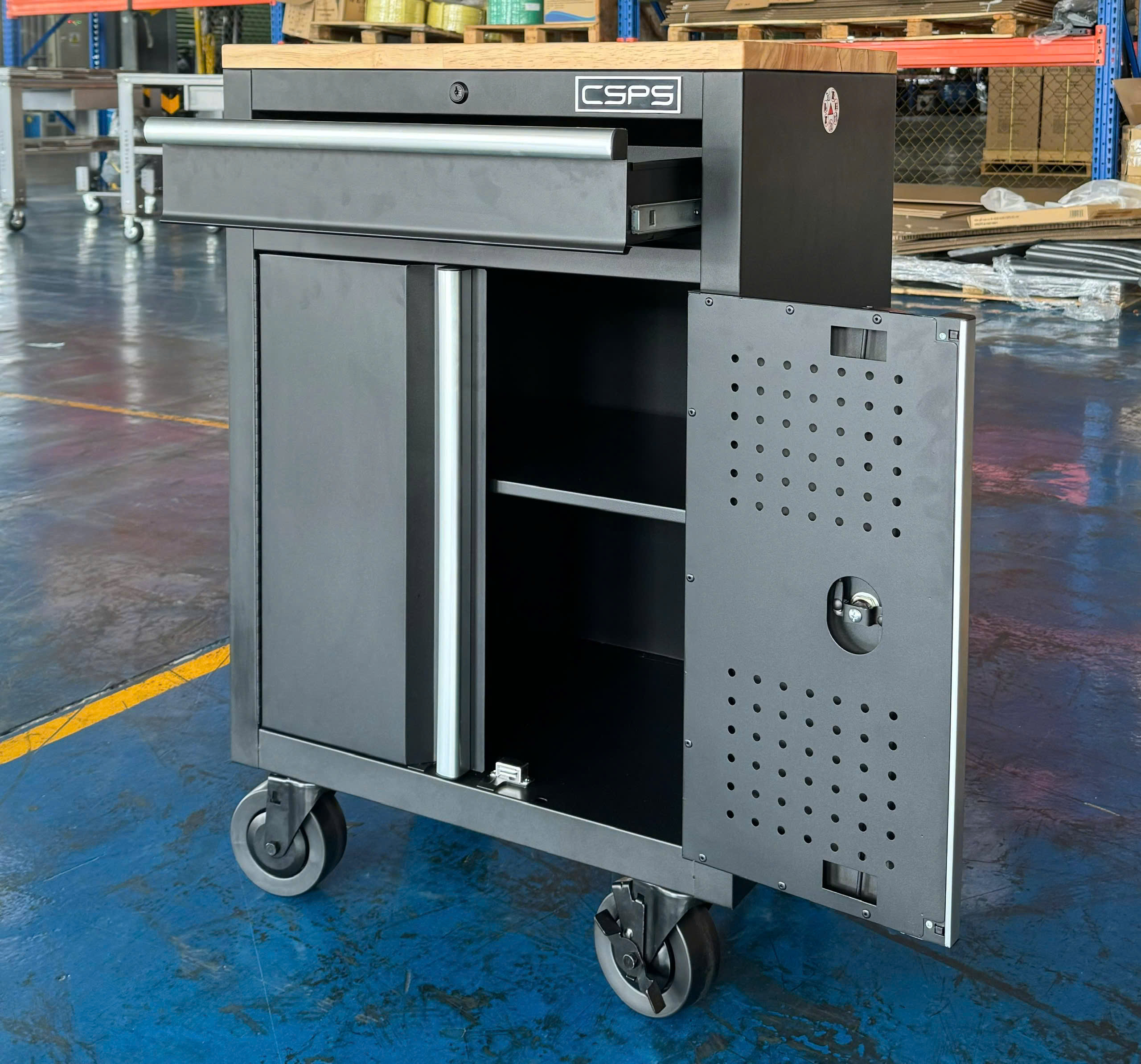 ✨Tủ dụng cụ CSPS 61cm - 01 hộc kéo màu đen bánh xe ván gỗ (tay cầm trắng)