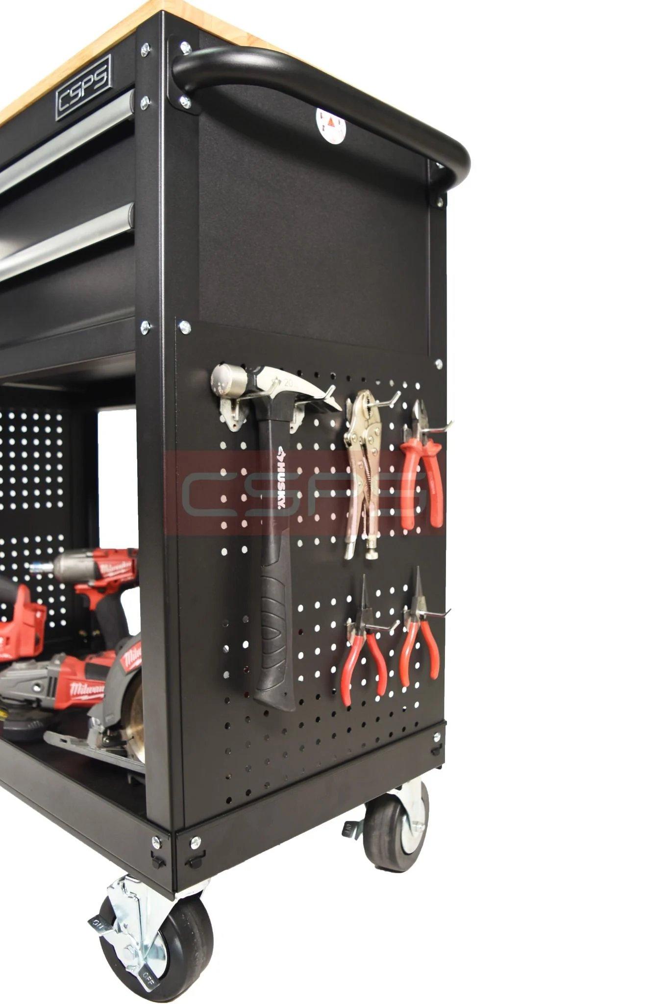 Tủ dụng cụ CSPS 7 ngăn kéo, mặt ván gỗ và vách lưới chất lượng cao. THÔNG SỐ KỸ THUẬT 1 THÔNG SỐ CHUNG Kích thước sản phẩm: 76.4 cm Ngang x 46.2cm Sâu x 96