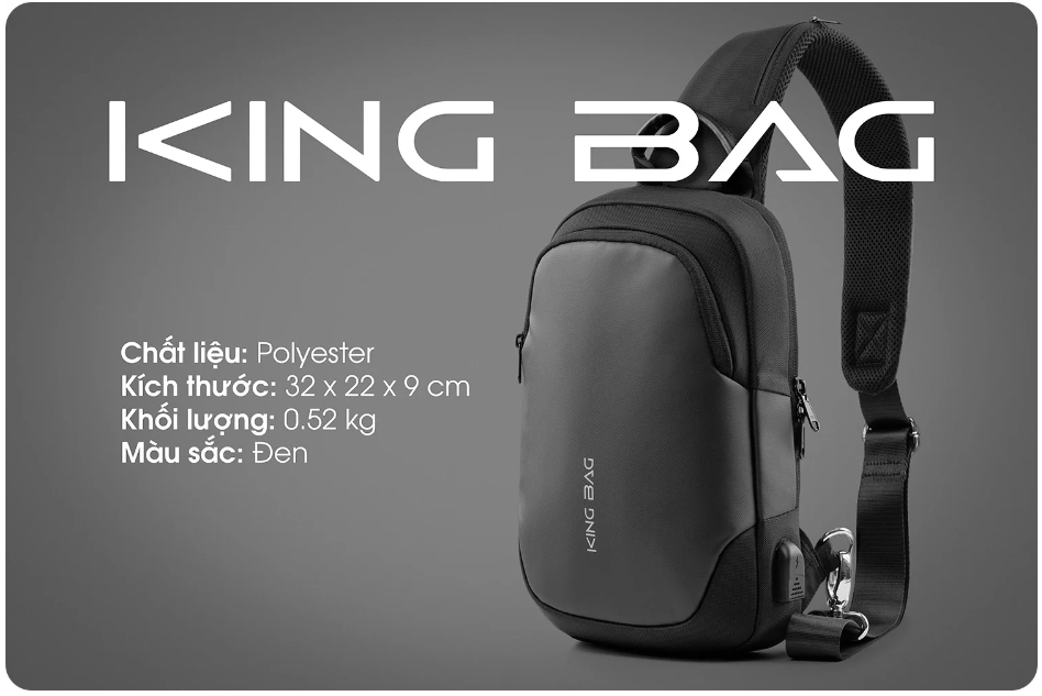 ✨Túi Đeo Chéo 11 Inch có cổng sạc USB, vải trượt nước, nhiều ngăn phụ tiện ích KINGBAG JULIUS I - Hàng Chính Hãng