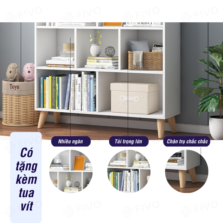 ✨Tủ Kệ Sách Gỗ Đẹp Hiện Đại Đa Tầng FIVO Mã FB60 Chất Liệu Gỗ MDF Phủ Melamine Chống Thấm Bề Mặt, Dễ Dàng Lắp Ráp Có Kèm Tấm Lưng (Kích Thước 100x24x107cm)